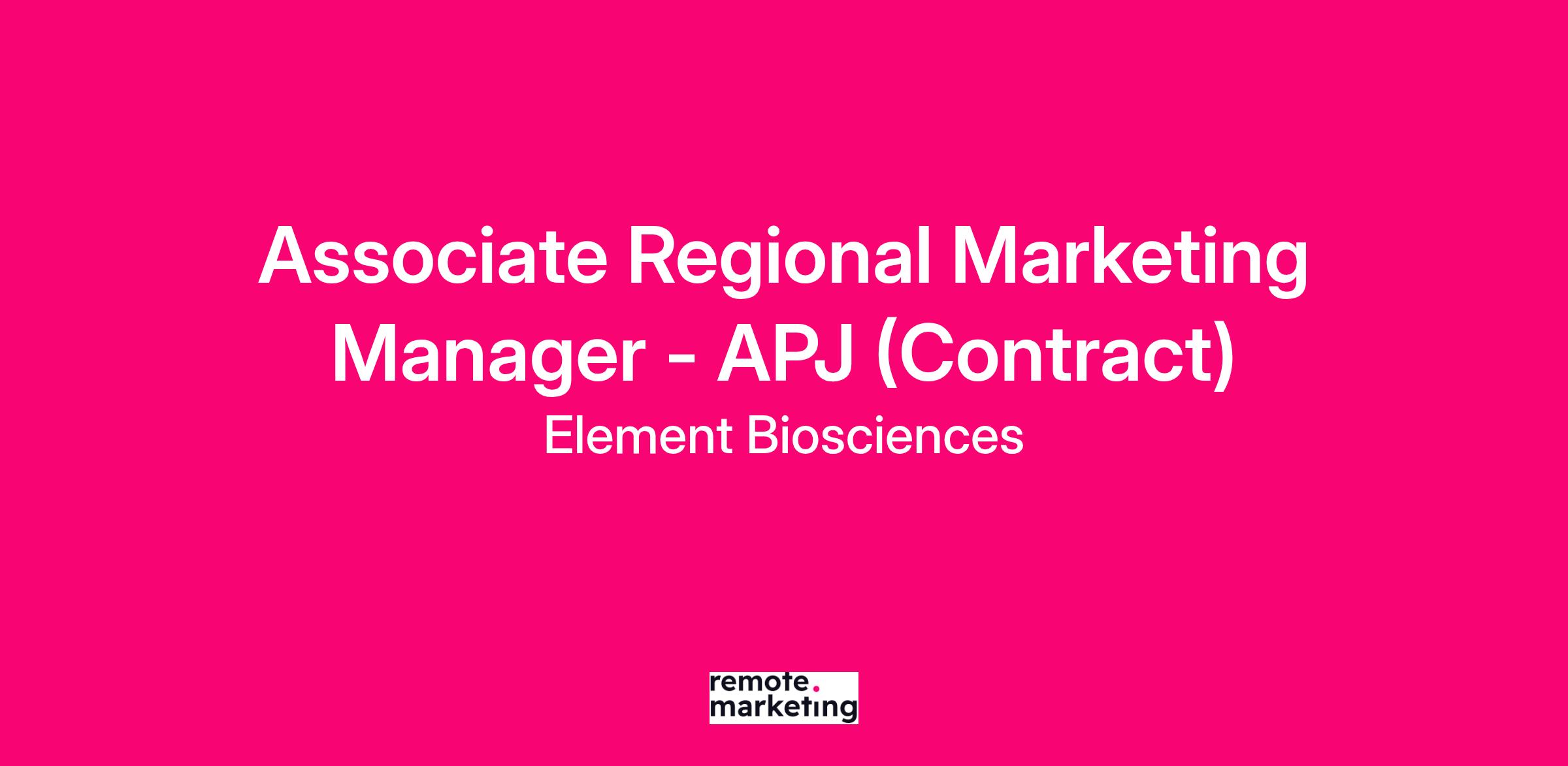 <p>We are seeking an experienced <strong>Associate Regional Marketing Manager, APJ </strong> who will play a pivotal role in supporting the channel partners, sales director and driving outbound activities that execute the business strategy and objectives in Asia Pacific Japan. The ideal candidate will interact cross functionally with members from the commercial sales and global marketing teams and will be the central point of contact for territorial market planning, implementation, new product launch and regional market development. Key skill sets include regional marketing, program localization, sales enablement, lead generation/nurture and tactical marketing. Experience within the life sciences industry is a must. This is a contract role and will report to the Senior Regional Marketing Manager, EMEA & Asia Pacific Japan remotely based in the Asia Pacific Japan region.</p>