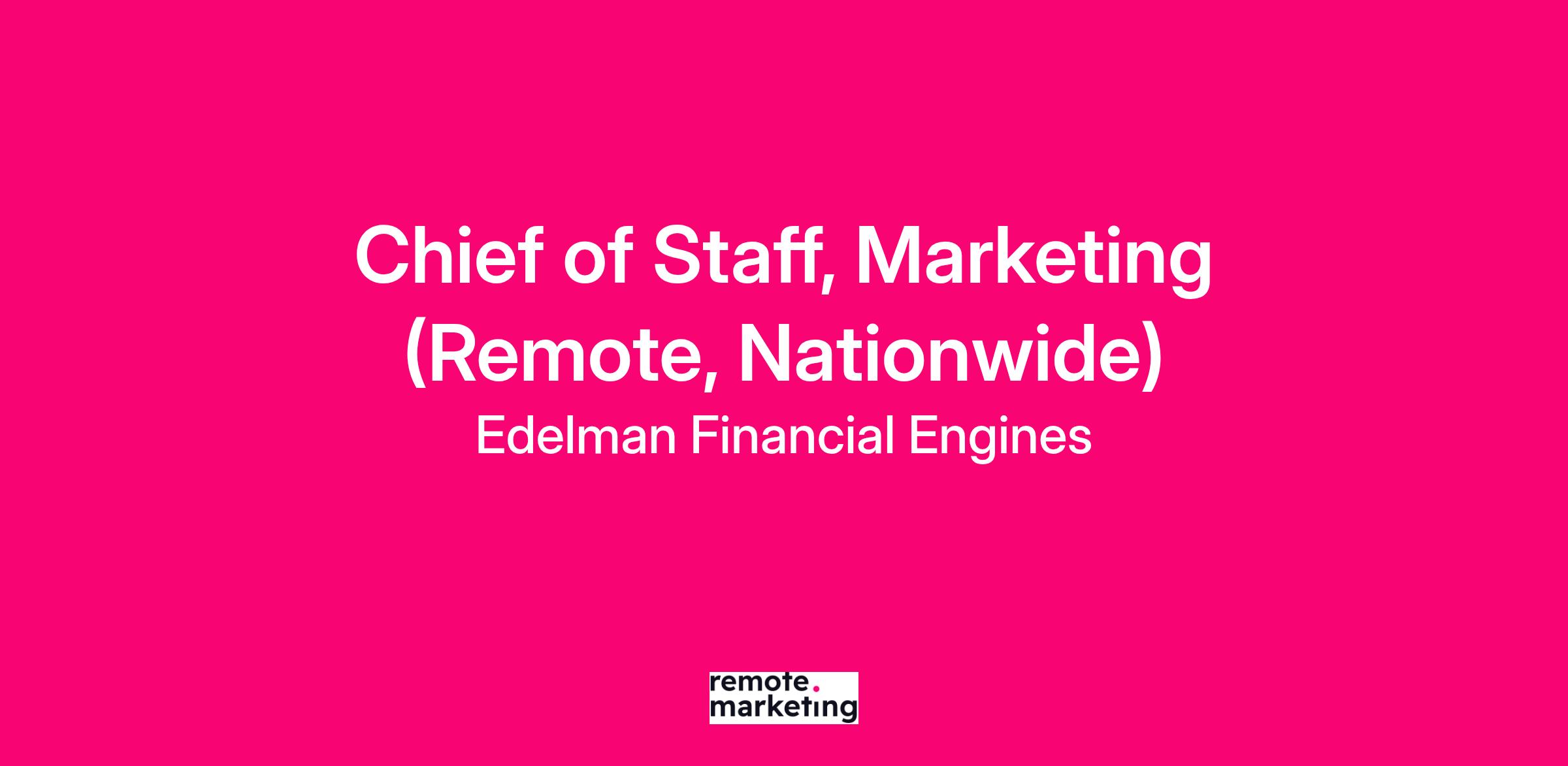 As Chief of Staff to the Marketing team, you’ll play a central role in the transformation of Edelman Financial Engines’ Marketing organization and Go-to-Market (GTM) strategy. You’ll help lead critical initiatives across the team and serve as a trusted advisor to the CMO, ensuring that priorities are clear, communication flows efficiently, and decisions get made effectively. This is a chance to have broad business impact and help shape the future of the business, the brand, and the team at a pivotal moment for our organization.