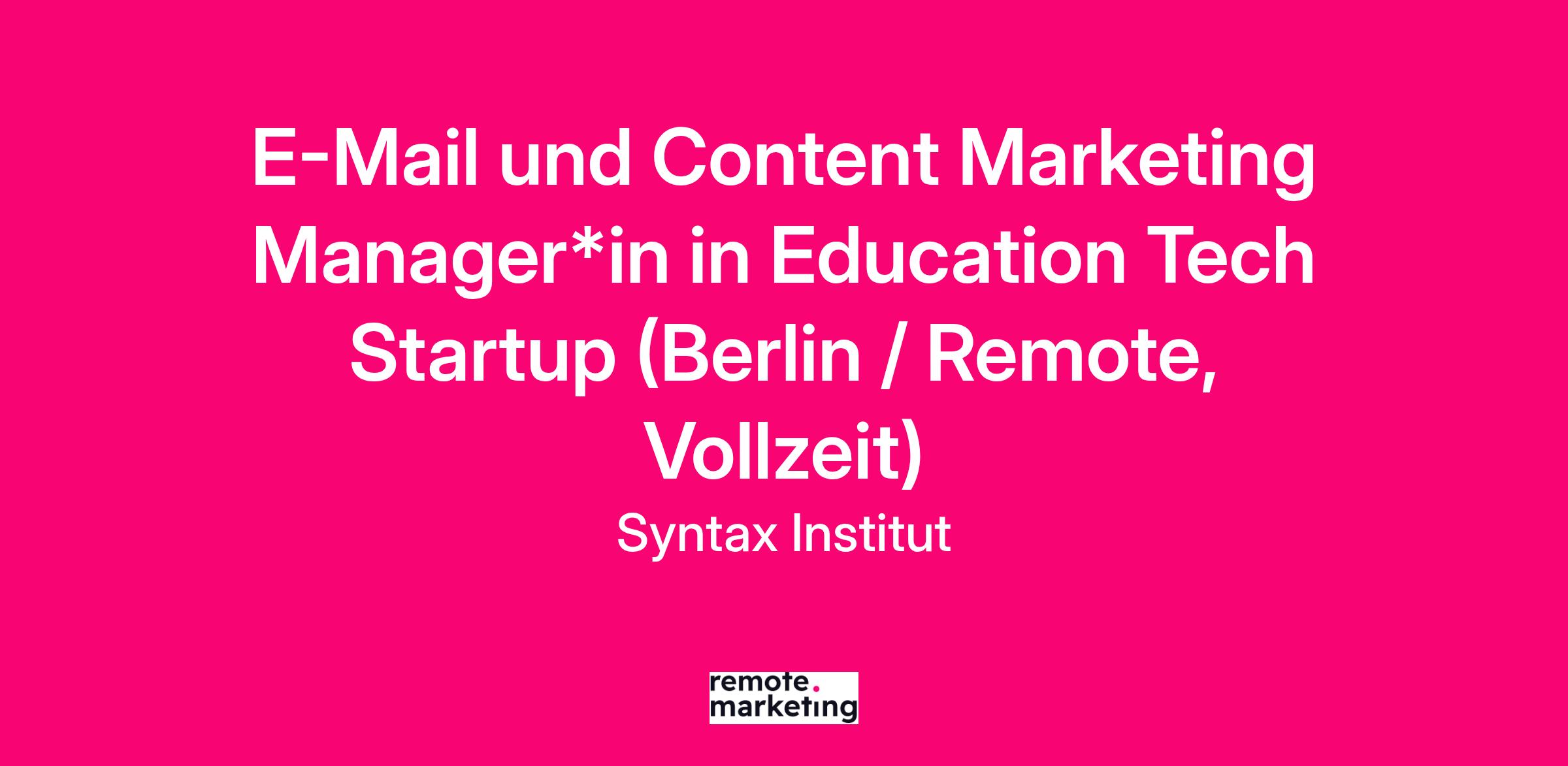 E-Mail und Content Marketing Manager*in in Education Tech Startup (Berlin / Remote, Vollzeit)