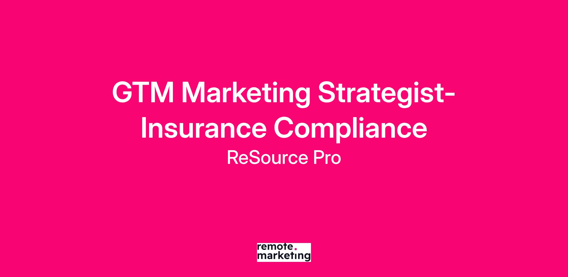 Your Role...ReSource Pro is seeking a GTM Marketing Strategist - Insurance Compliance who will lead, oversee, and support the integration of compliance into the strategic go-to-market strategies for ReSource Pro. This is a critical, high-impact role where you will partner with Digital, Demand Generation, Brand, and Compliance leadership. The primary mission is to deeply understand the customer, market, and revenue goals, and then develop, drive, and ensure the smooth execution of market strategy and content to support those objectives.We hire the best because we believe great people create exceptional experiences. That’s why we hire individuals who not only bring talent and passion, but who thrive in our unique culture and live out our Core Values: Commitment to Community, Teamwork, Passion for Excellence, Service-Centric, and Best Self.All remote positions are based in the United States,