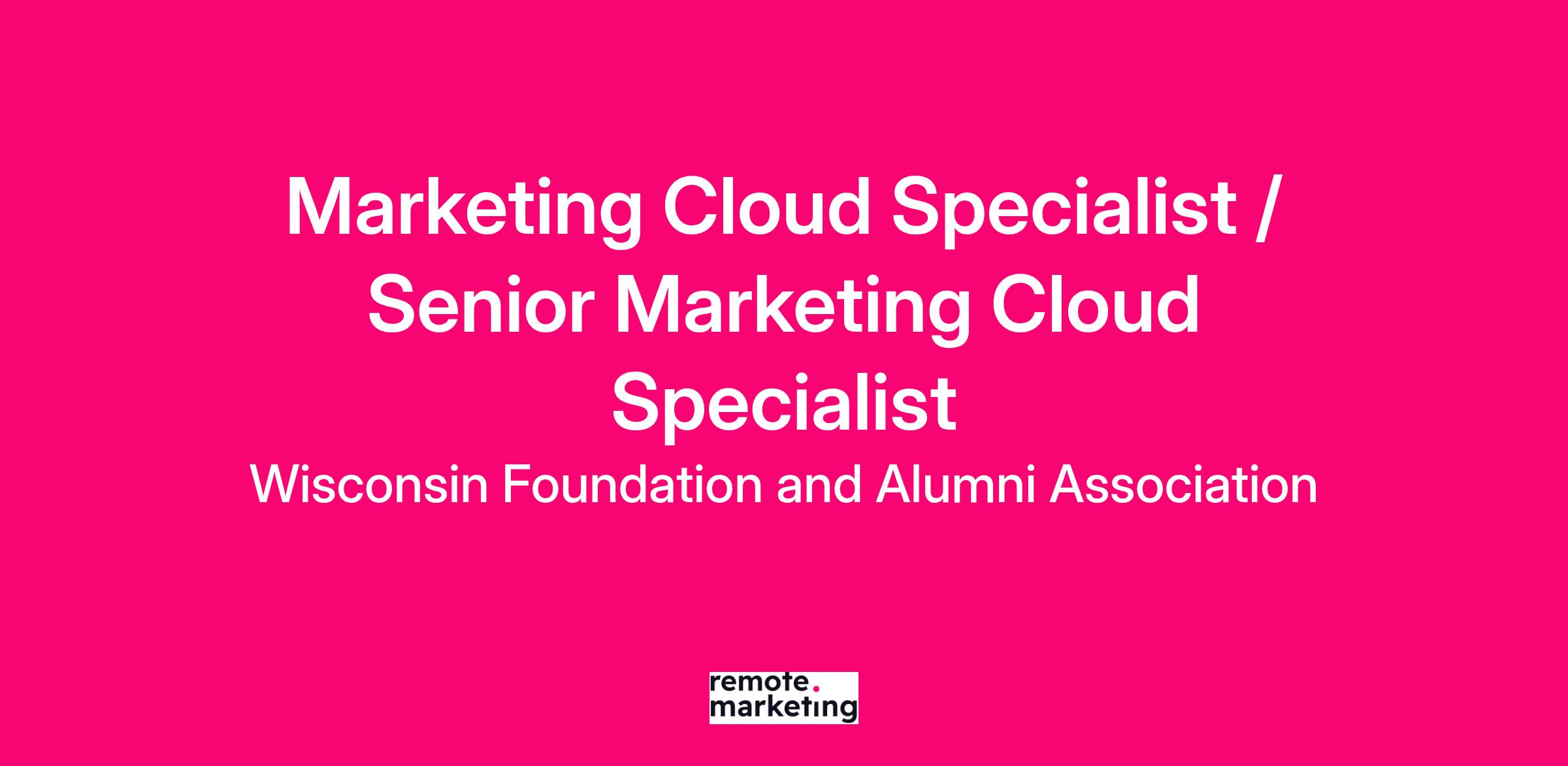 The Wisconsin Foundation and Alumni Association (WFAA)*, the private fundraising and alumni relations organization for UW-Madison, is recruiting for a Marketing Cloud Specialist to join our Digital Experience team. WFAA’s Digital Experience team is responsible for ensuring a seamless experience for constituents and operational excellence across all of our digital platforms and channels.