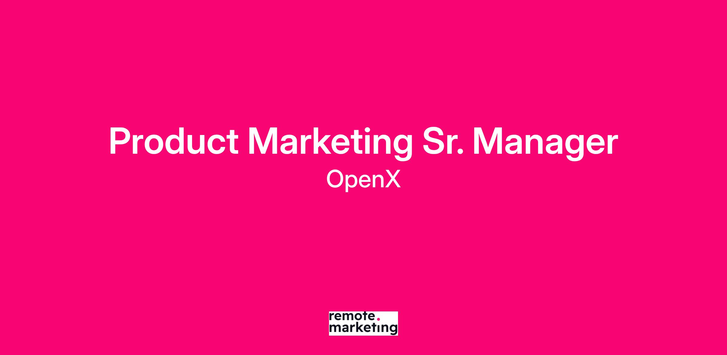 The Product Marketing Sr Manager will act as a leader in our growing Marketing organization. You will be responsible for defining, communicating, and proliferating the message about OpenX and our supply-side solutions to brands, agencies, publishers, DSPs, and data partners. You will champion our customers' needs and our brand's values, and understand the strategic alignment with our partners' needs. You'll help assess our market, understand the competitive landscape, our unique differentiation, and how to position our product solutions for ongoing success and growth. Reporting to the Director of Marketing, the Product Marketing Senior Manager will lead go-to-market activities and solutions, owning client-facing product marketing with a specific focus on publisher partners. You will act as a liaison between our external clients and internal product and revenue teams, serving as the subject matter expert on our products and capabilities.