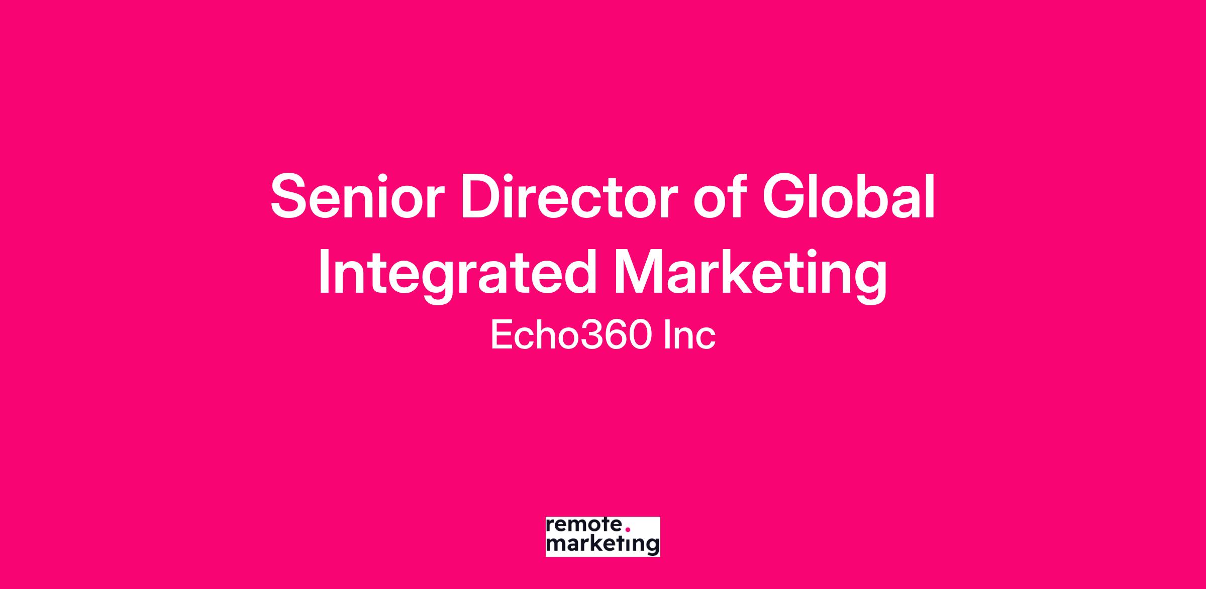 Echo360 is seeking a Senior Director of Global Integrated Marketing to lead the planning and execution of global marketing and messaging initiatives across higher education and corporate markets in North America, EMEA, and APAC. This leadership role is responsible for leading and mobilizing a team of marketing managers and agency partners, ensuring seamless, flawless, and high velocity execution of demand generation, product marketing, digital marketing, creative campaigns, customer communication, and event marketing activities.