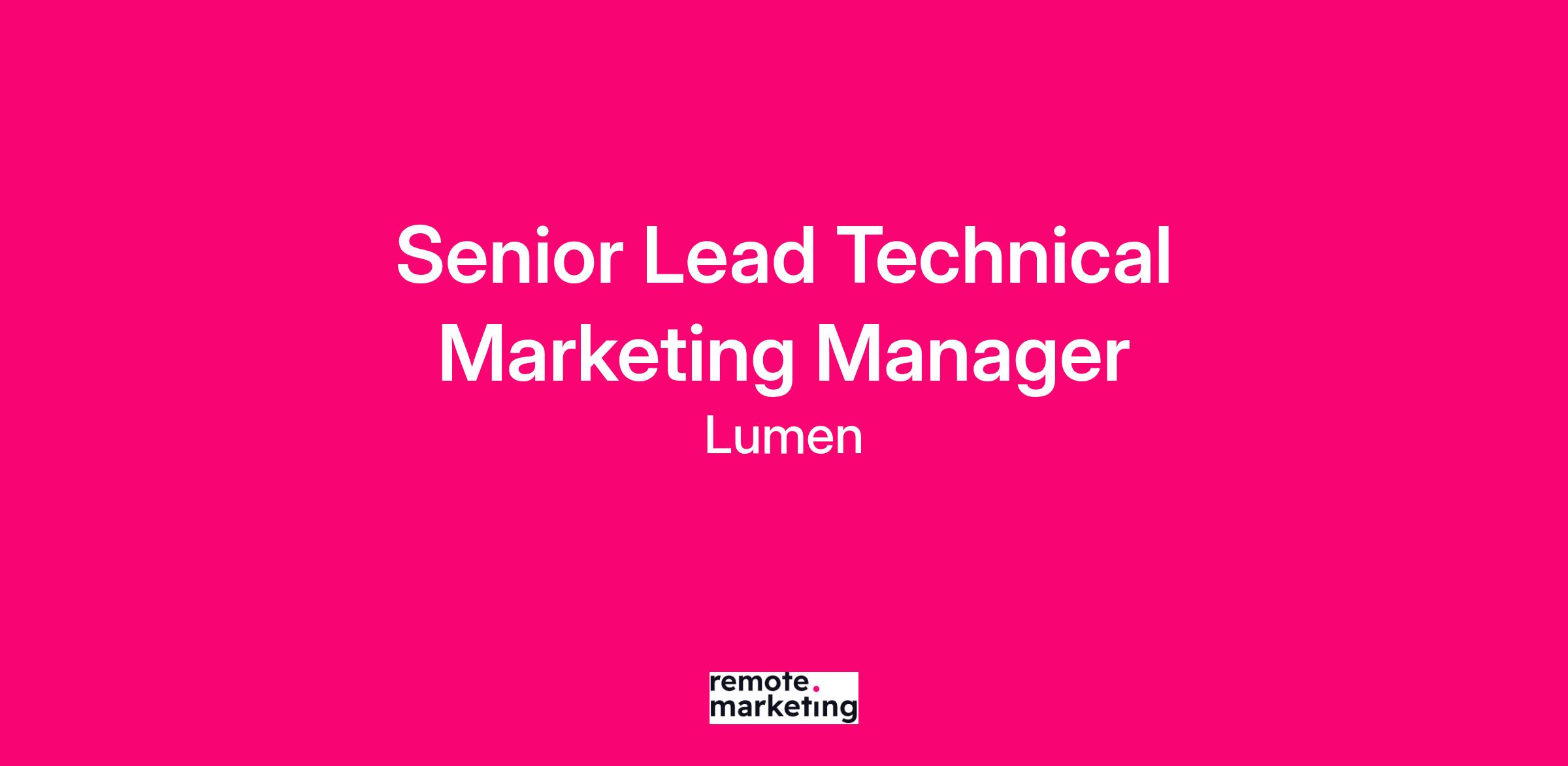 </div><div><p><span style="font-family: arial, helvetica, sans-serif;">We are seeking a highly skilled and detail-oriented SR Lead Technical Marketing Manager to join our core Marketing team at Lumen. This role involves leading technical marketing strategies and supporting the overall product marketing efforts. You will report directly to the Director of Technical Marketing and work closely with other cross-functional teams to ensure the successful delivery of our products to market. This position requires a blend of technical acumen, leadership skills, and business understanding to drive best-in-class marketing initiatives. </span></p><p><span style="font-family: arial, helvetica, sans-serif;">This role will serve as a key bridge between Solution Engineering, sales, and marketing teams. This role requires technical depth in cloud, data center and networking technologies combined with a strategic approach to positioning, messaging, and enablement. You will create compelling technical content, engage customer-facing teams, and drive initiatives that position our core portfolio as industry-leading with technical buyers/ influencers.</span> </p></div></div><div style='padding: 10px 0px;border: 1px solid transparent;'><div style='font-size:16px;word-wrap: break-word;'><H2 style='font-size: 1em; margin: 0px'><b>The Main Responsibilities</b></H2>