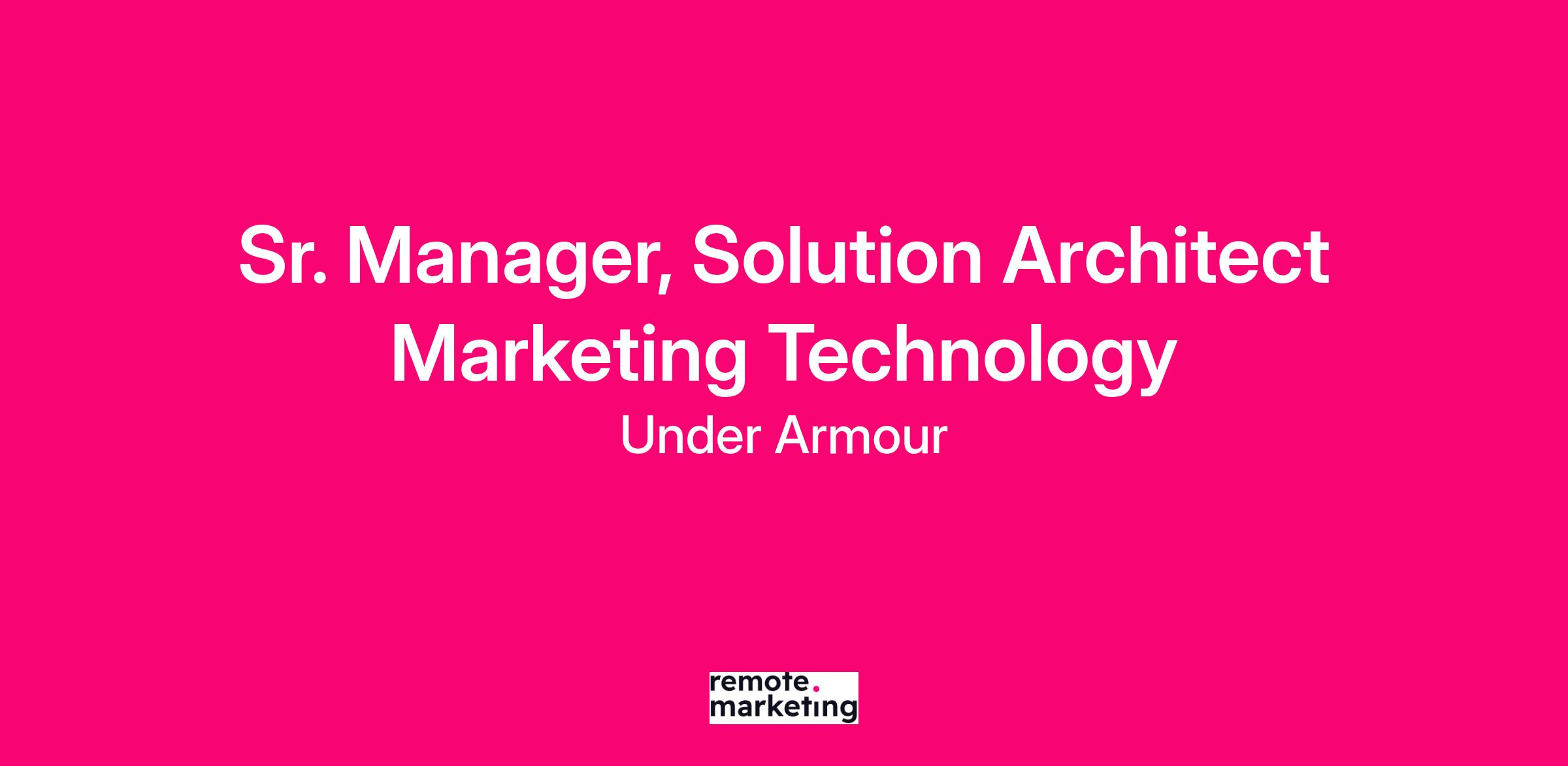 Oversees the technical design and architectural framework for Under Armour’s Customer Data, Email Marketing and Customer Service technologies and stays current on market trends and product roadmaps of technology platforms to keep Under Armour in front of new capabilities and consumer expectations