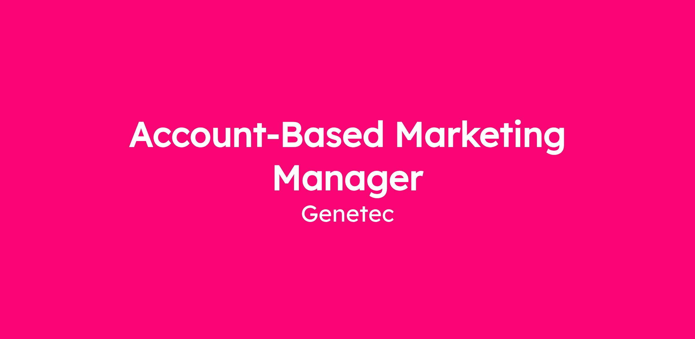 Genetec is a market leader and innovative technology company with a broad solutions portfolio that encompasses security, intelligence, and operations. We’re seeking an Account-Based Marketing Manager to join our regional North American marketing team.