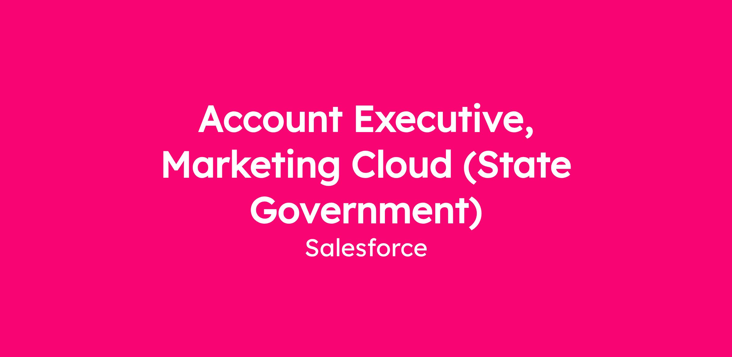 The Salesforce Digital AE is a subject matter expert and trusted advisor who works with State Government Agencies and Partners to evangelize marketing platform solutions that deliver relevant, personalized journeys across channels and devices. We are seeking an experienced quota-carrying sales executive who can work both as part of a broader Account Team and as an Individual Contributor driving self-generated sales opportunities focused on the full Salesforce Marketing technology stack. If you have a passion for being at the cutting edge of how State Agencies engage with their constituents, we want to speak with you!