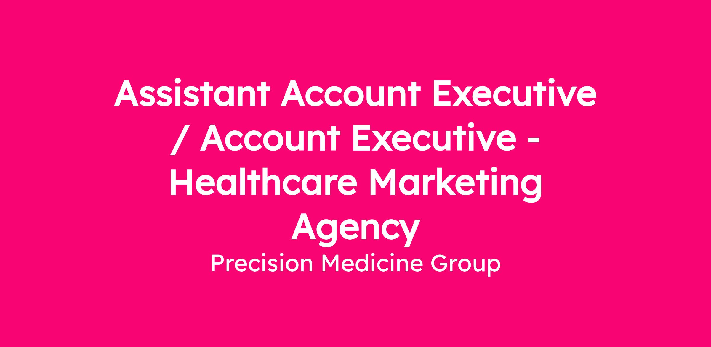 Precision AQ, is the top payer marketing agency in the country. We partner with global pharmaceutical and life sciences companies who are developing groundbreaking treatments to make medicines accessible and affordable. We excel at demonstrating the economic, clinical, and societal value of creative medical treatments to payers, providers, patients, and policymakers. At Precision AQ, we will recognize your achievements and contributions. You will have the opportunity to learn from external training, provide mentorship, and work with cross-functional project teams. Plus, our advancement opportunities will allow you to realize your full potential. We are seeking an Assistant Account Executive or Account Executive to add to our team.Â