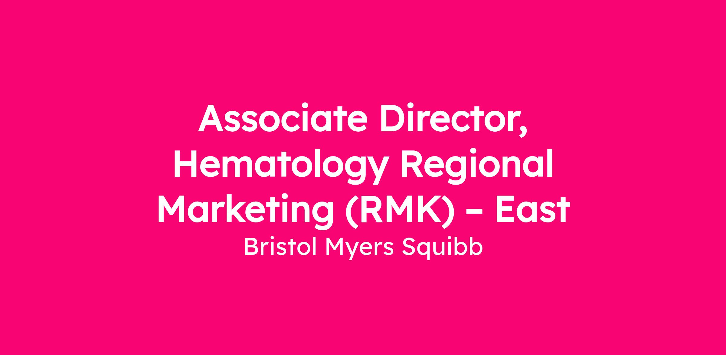 R1601572 : Associate Director, Hematology Regional Marketing (RMK) – East
