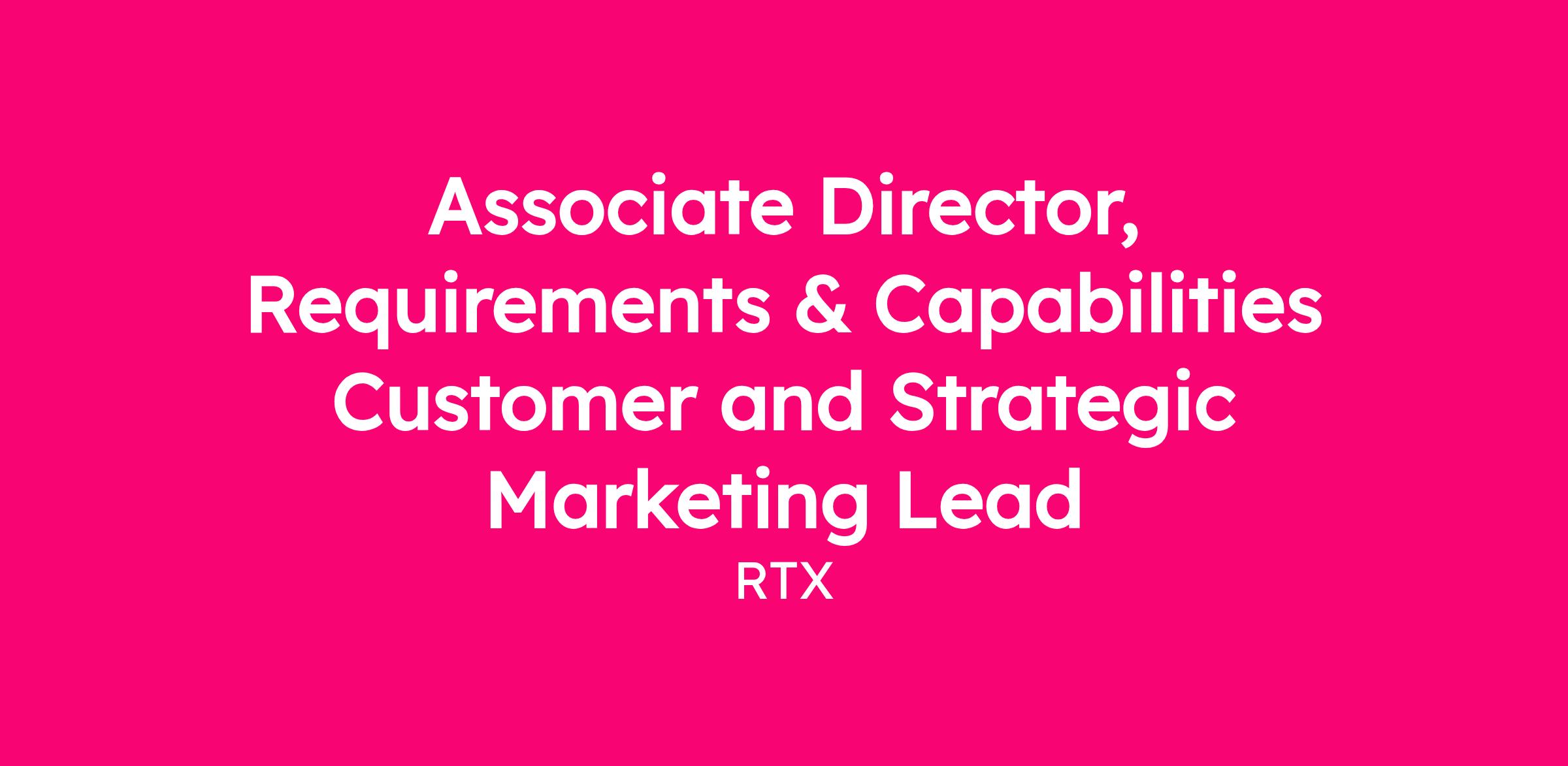 The Raytheon Requirements and Capabilities (R&C) Investments & Customer Excellence team is hiring a Customer and Strategic Marketing lead. This leadership role is responsible for defining, governing, and the R&C strategic approach to customer marketing. The Associate Director owns the end-to-end customer marketing strategy, while directly leading analytical efforts for near real time analysis of environment dynamics, customer behaviors and customer budgets that impact the Raytheon bookings pipeline. Operating within the Raytheon R&C Investments & Customer Excellence (I&CE) team, the Associate Director ensures that the insights and analysis of customer investment behaviors are translated across the key pillars of I&CE - Customer Excellence, Investments and Aftermarket Strategy. Close partnership with these leaders and their teams will be critical in addition to integration of the voice of the customer from R&C Customer Account Managers. In summary, this role will be critical to bridge internal teams to ensure achievement of bookings goals through customer marketing and advocacy initiatives.