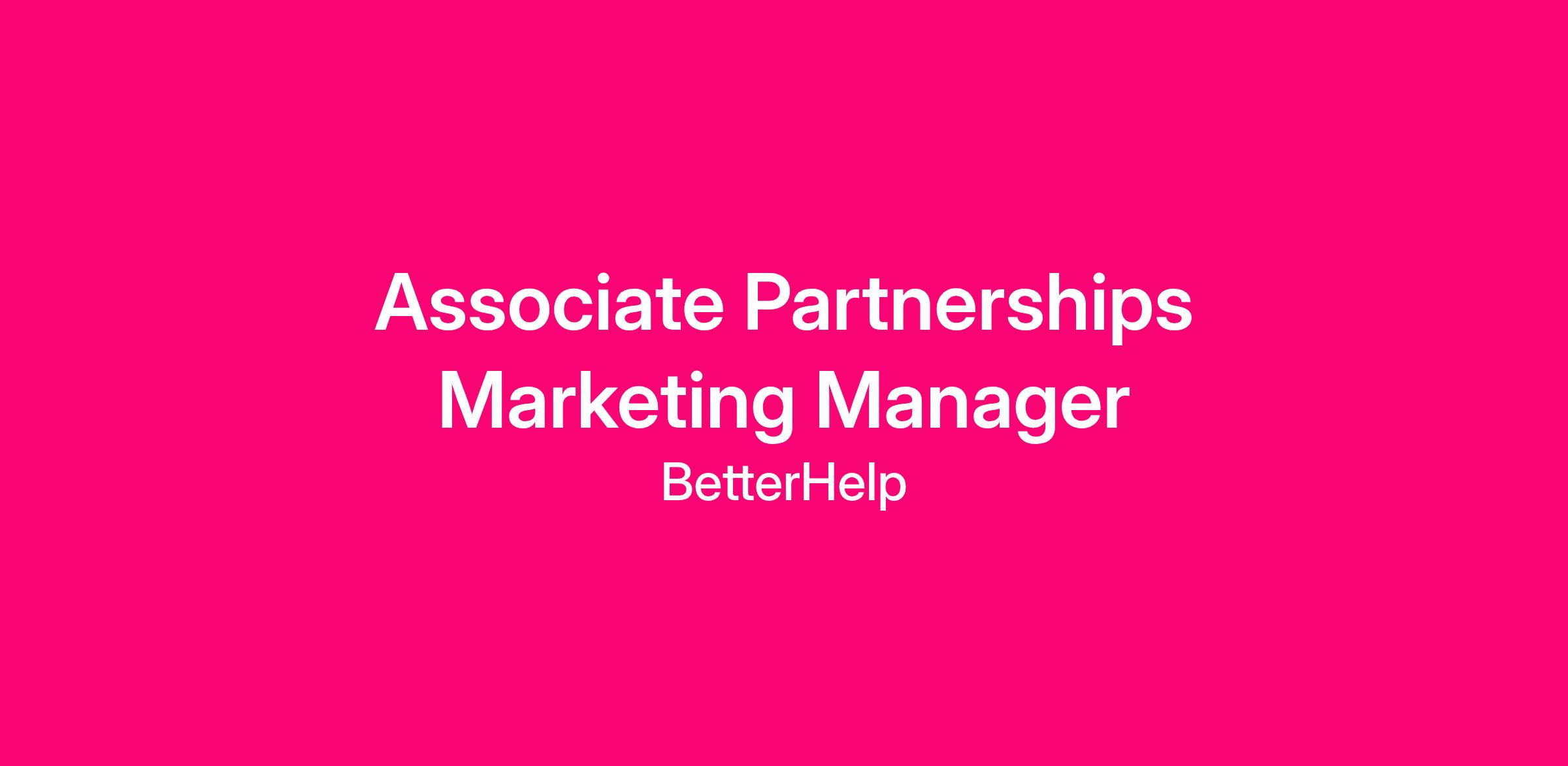 As an Associate Partnerships Marketing Manager, you’ll help accelerate one of BetterHelp’s fastest-growing marketing channels by strengthening relationships with a diverse range of affiliate and strategic partners. In this role, you will manage a book of existing partners, optimize campaign performance, and surface new opportunities to drive meaningful user acquisition. You’ll work closely with external partners and internal teams to improve key KPIs, implement marketing optimizations, and ensure our partnership ecosystem continues to scale efficiently and sustainably.