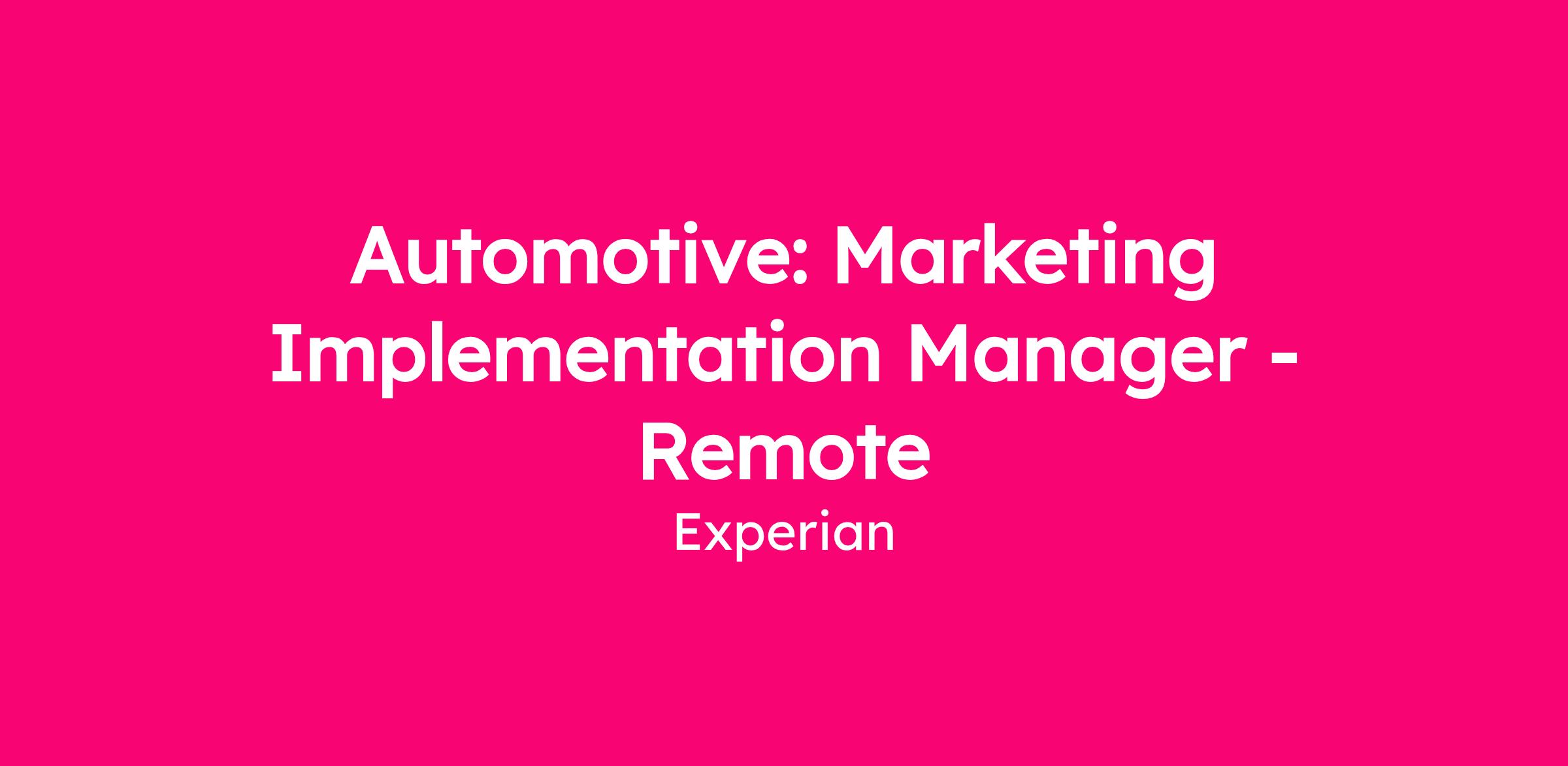 As the Automotive: Marketing Implementation Manager, you will lead a team responsible for onboarding, delivery, and ongoing support of Experian's data-driven marketing solutions for automotive clients.
