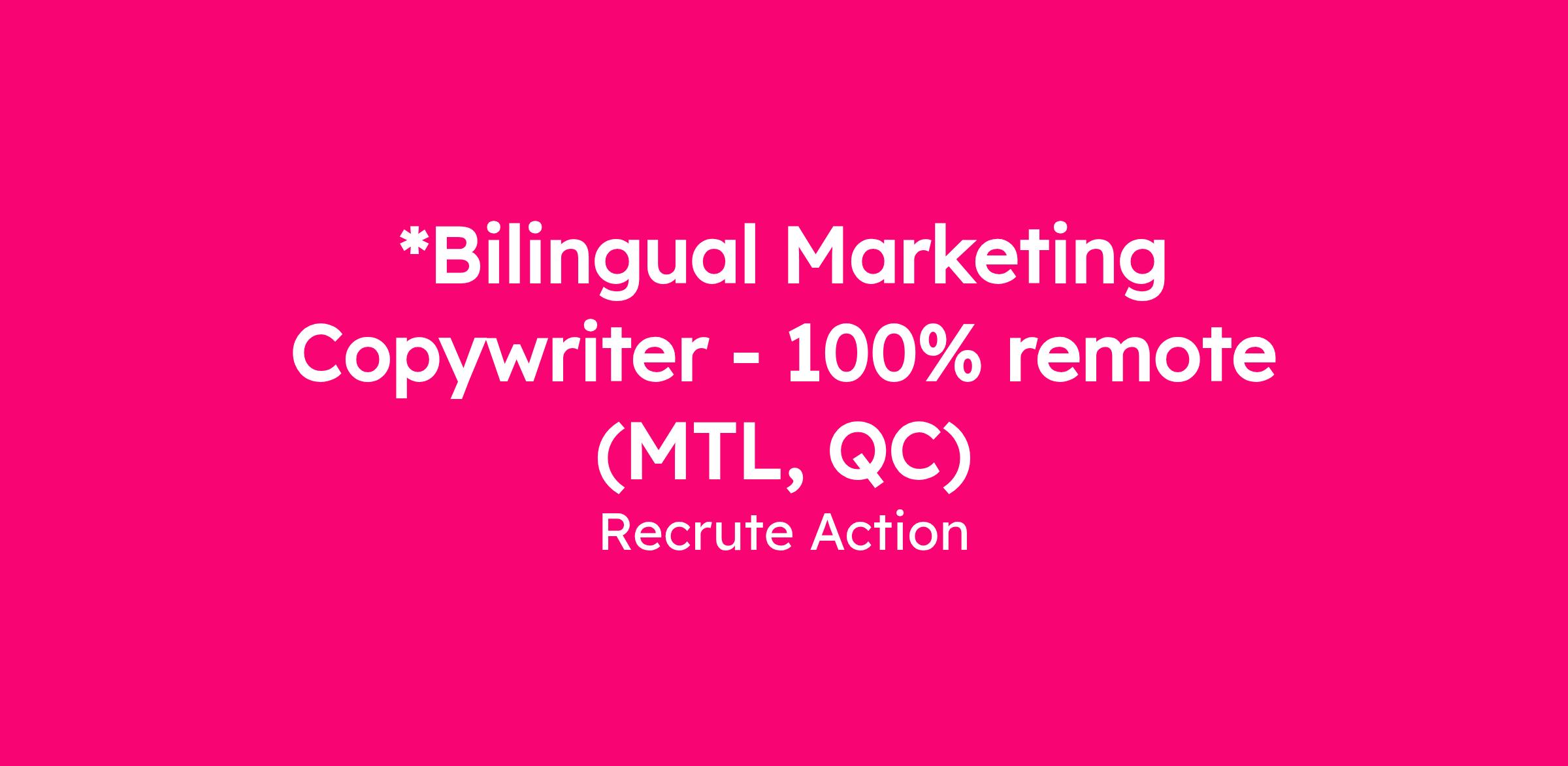 *Bilingual Marketing Copywriter - 100% remote (MTL, QC)