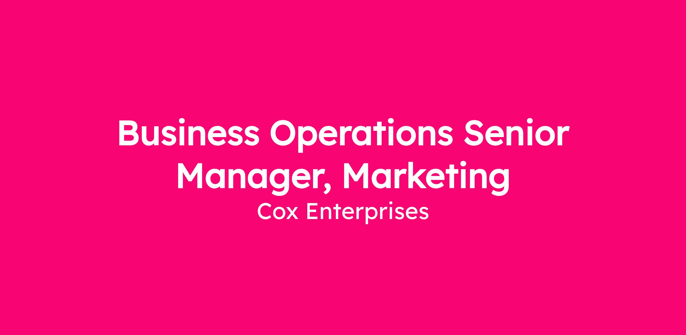 Cox Enterprises is seeking a Business Operations Senior Manager, Marketing to join our team. The preferred locations for this role are Atlanta, Georgia or West Palm Beach, Florida. Employees based in either office will follow a hybrid schedule that includes both in-office and remote work. Candidates outside of these locations may work fully remote. Regardless of location, the role requires working EST hours.
