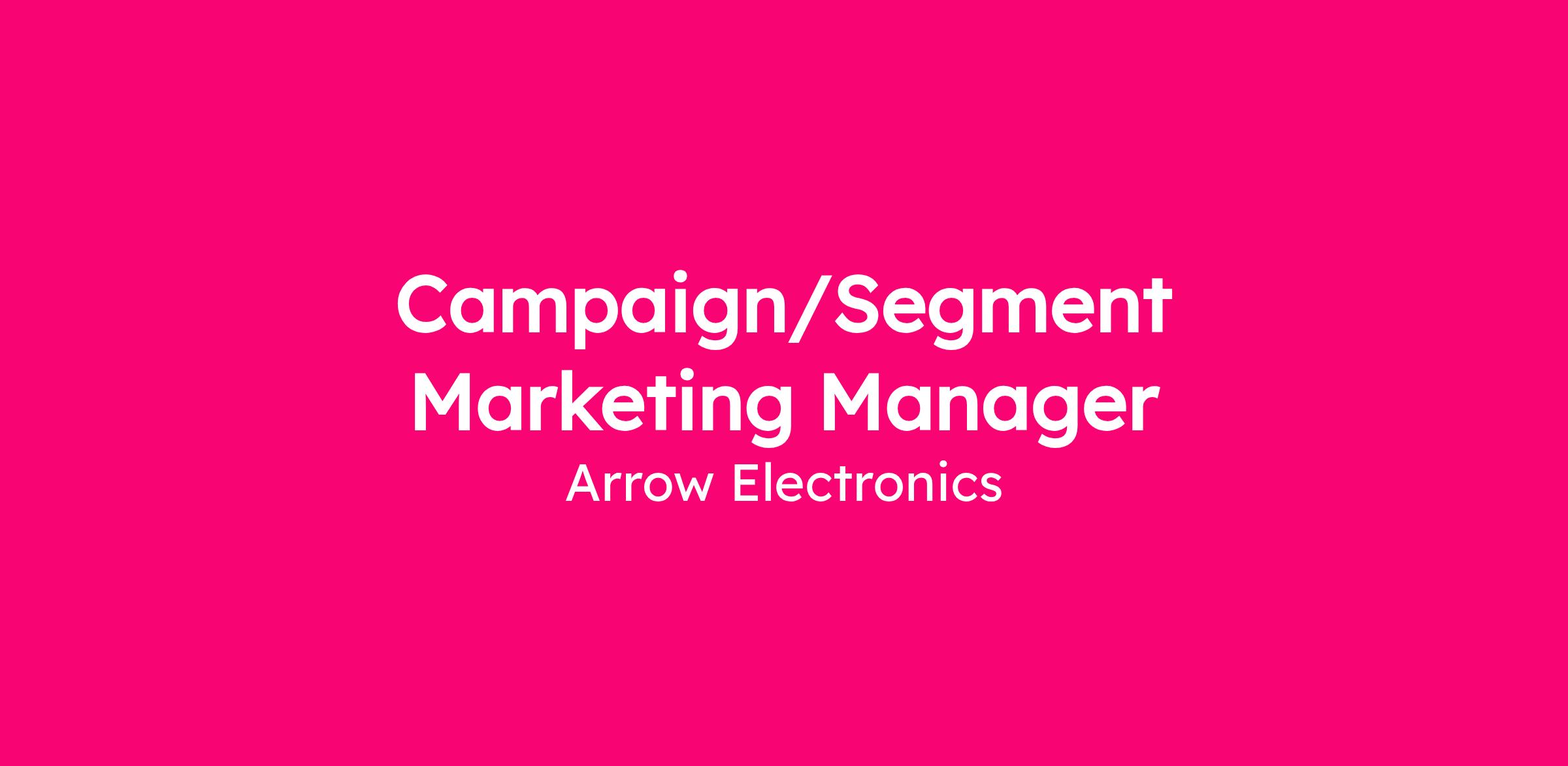 The Campaign/Segment Marketing manager will report into Arrow’s corporate marketing department and provide support to the global component supplier marketing team through the execution and management of strategic verticals.