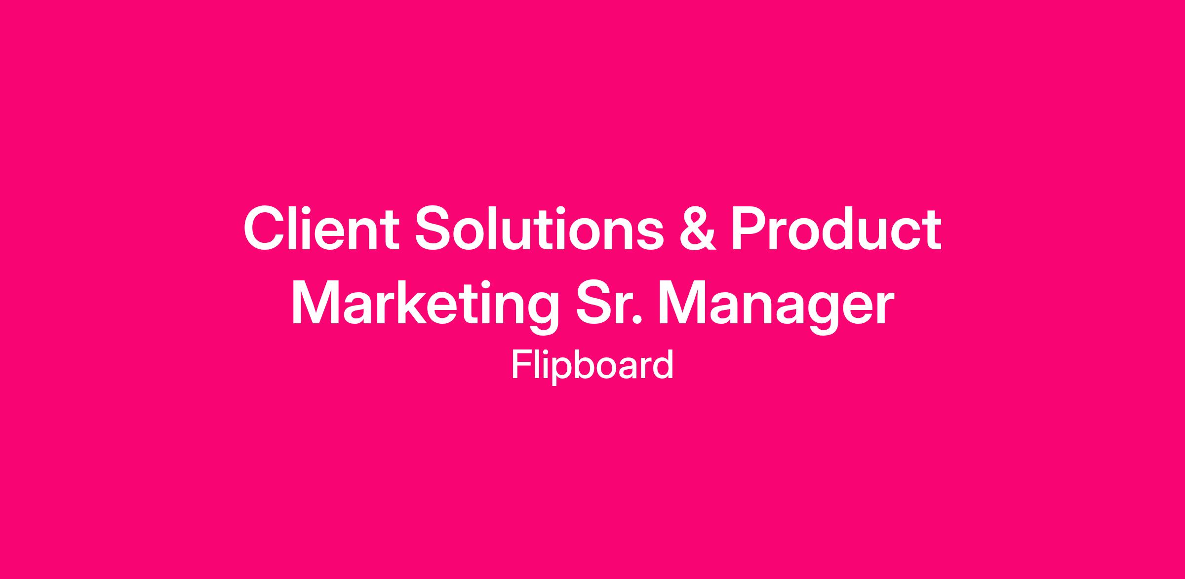 The Client Solutions & Product Marketing Sr. Manager is a hybrid, highly collaborative role that sits at the intersection of revenue, product, and storytelling. This individual is responsible for driving revenue through strong pre-sale strategy, post-sale execution, and compelling go-to-market narratives that bring Flipboard’s advertising products to life.