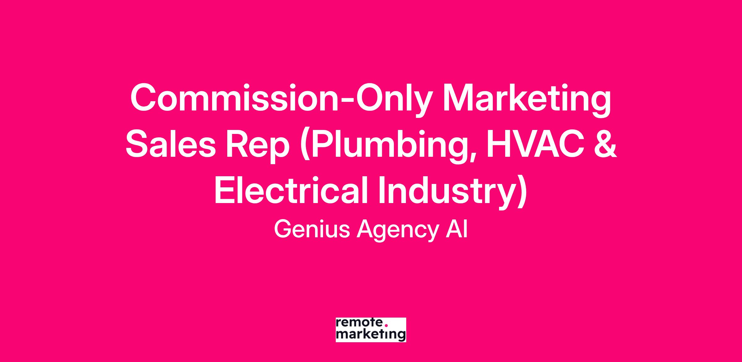 Genius Agency AI is in search of a motivated and results-driven Commission-Only Marketing Sales Representative specializing in the Plumbing, HVAC, and Electrical industries. In this role, you will be responsible for generating new business opportunities and promoting our marketing services tailored specifically for these sectors. This position operates on a commission-only basis, providing you with unlimited earning potential based on your sales performance.