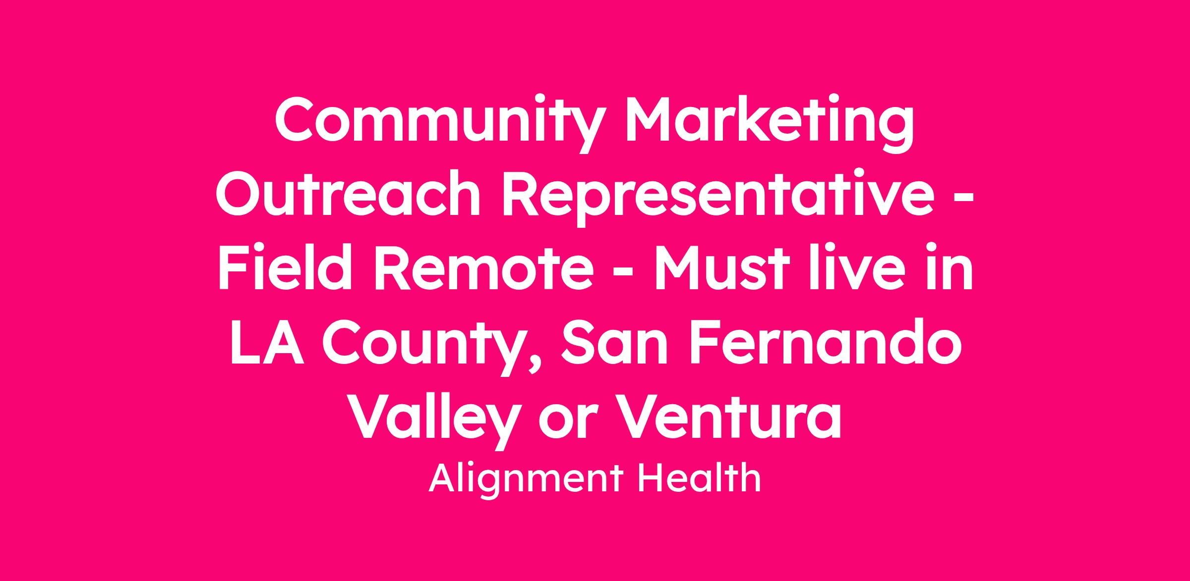 • Preferred: 5+ years experience in Healthcare. 2 years community grassroot marketing experience.