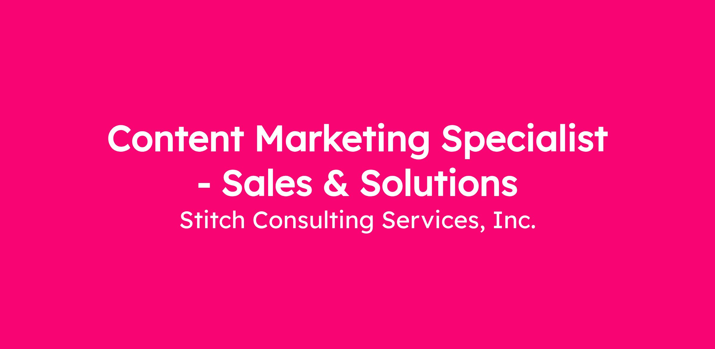 This role is part of the Stitch marketing team and reports to the Solution Marketing Lead.