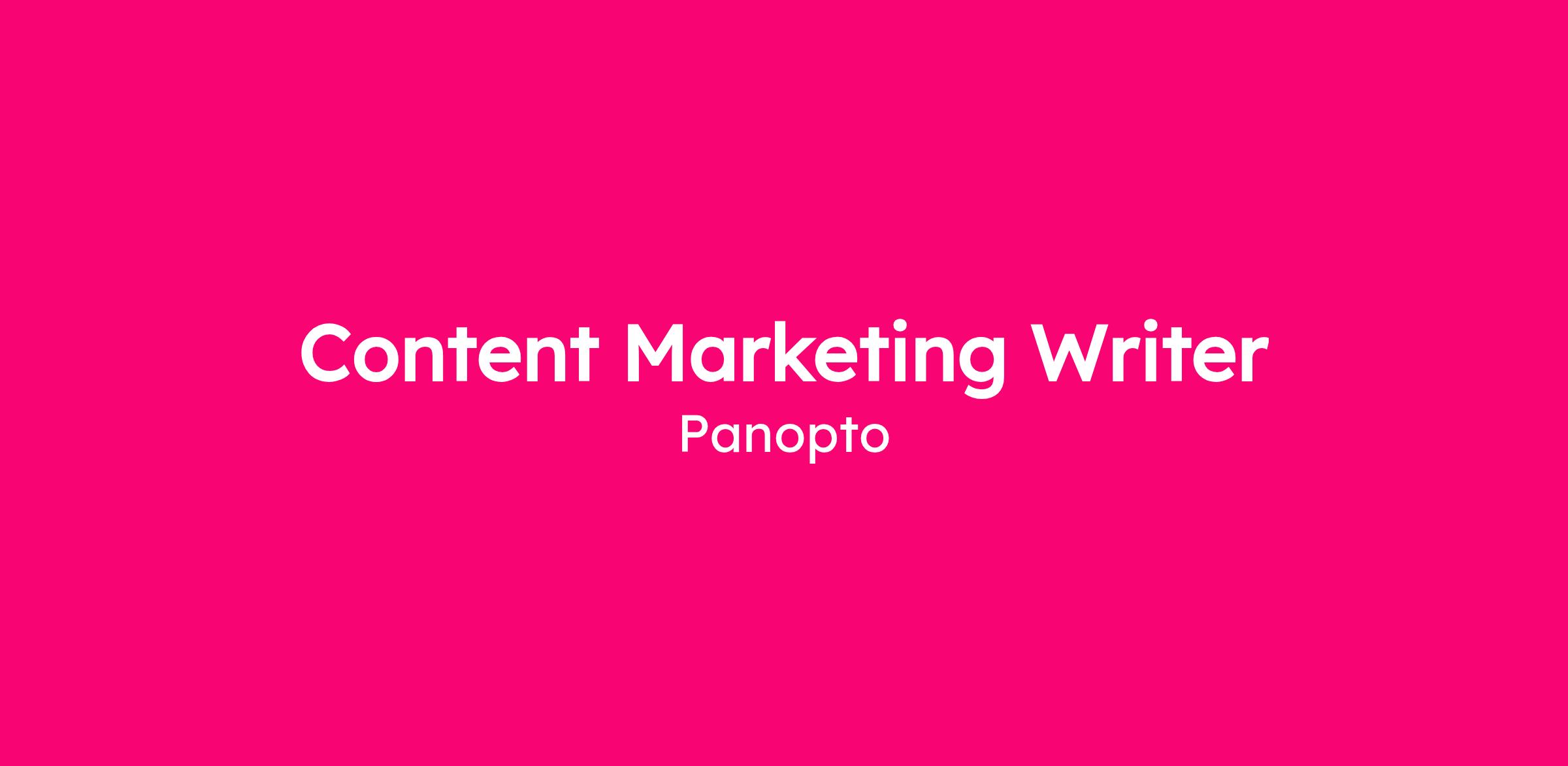 Join Panopto and be part of an exciting journey where your expertise in content strategy and storytelling will make a significant impact on our growth trajectory. If youâre a proactive, curious, and results-driven content professional ready to shape how we show up in the market and drive meaningful engagement, we encourage you to apply.