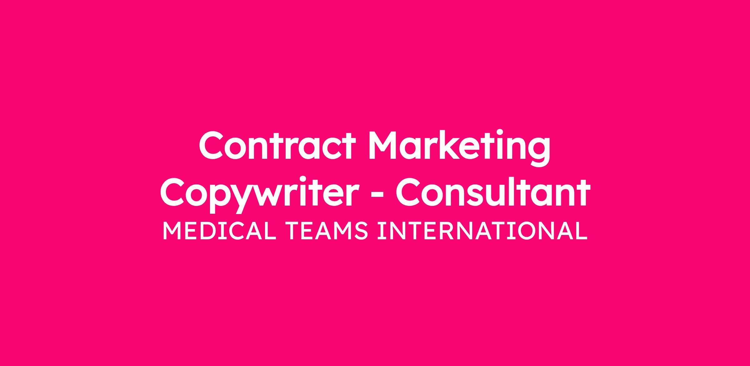 Medical Teams International is seeking proposals from qualified Copywriters (individual contractors) to support the organization’s brand positioning, fundraising growth, church and volunteer engagement strategies, and PR initiatives.