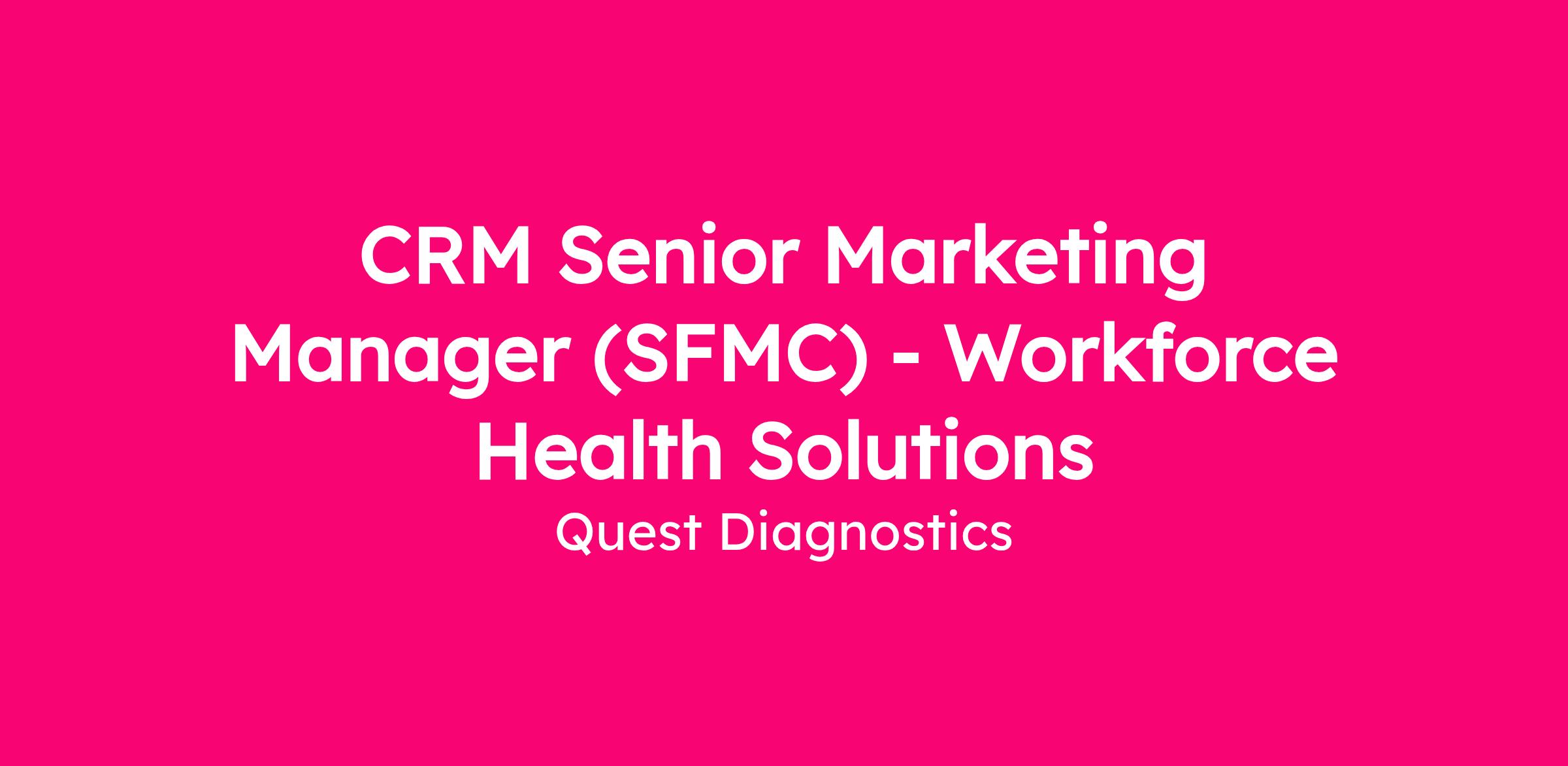 The CRM Senior Marketing Manager is responsible for the member engagement strategy and development of transactional, lifecycle, and promotional email marketing campaigns in Salesforce Marketing Cloud to support the Workforce Health Solutions business goals in member acquisition and member participation. The CRM Senior Marketing Manager will collaborate closely with internal teams to support the execution of email campaigns and operations. This role will support Quest’s Workforce Health Solutions business and be part of the Consumer Marketing team.