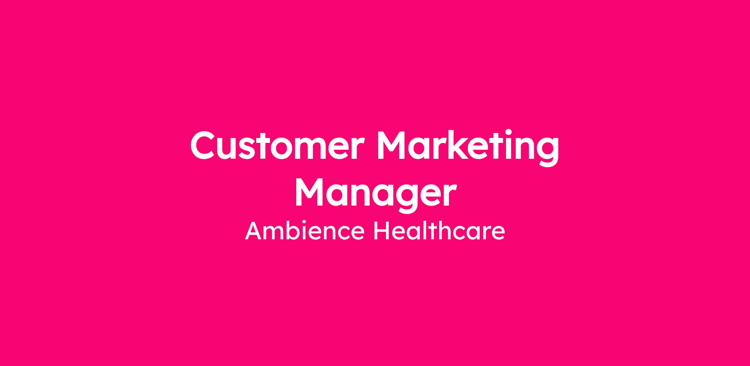 We are looking for a Customer Marketing Manager to own customer advocacy programs, build and maintain our customer proof infrastructure, and partner cross-functionally to ensure Ambience's strongest asset, our customers, is activated strategically across every stage of the GTM motion.