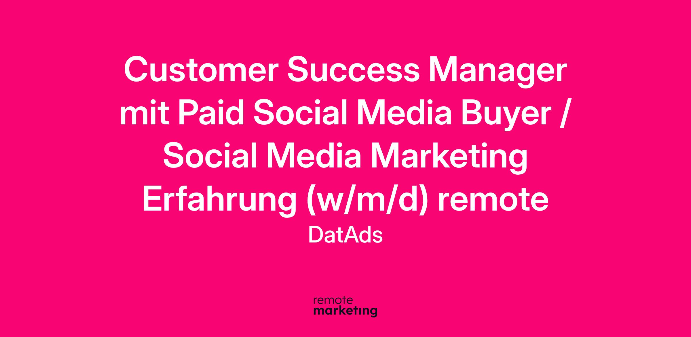 Customer Success Manager mit Paid Social Media Buyer / Social Media Marketing Erfahrung (w/m/d) remote