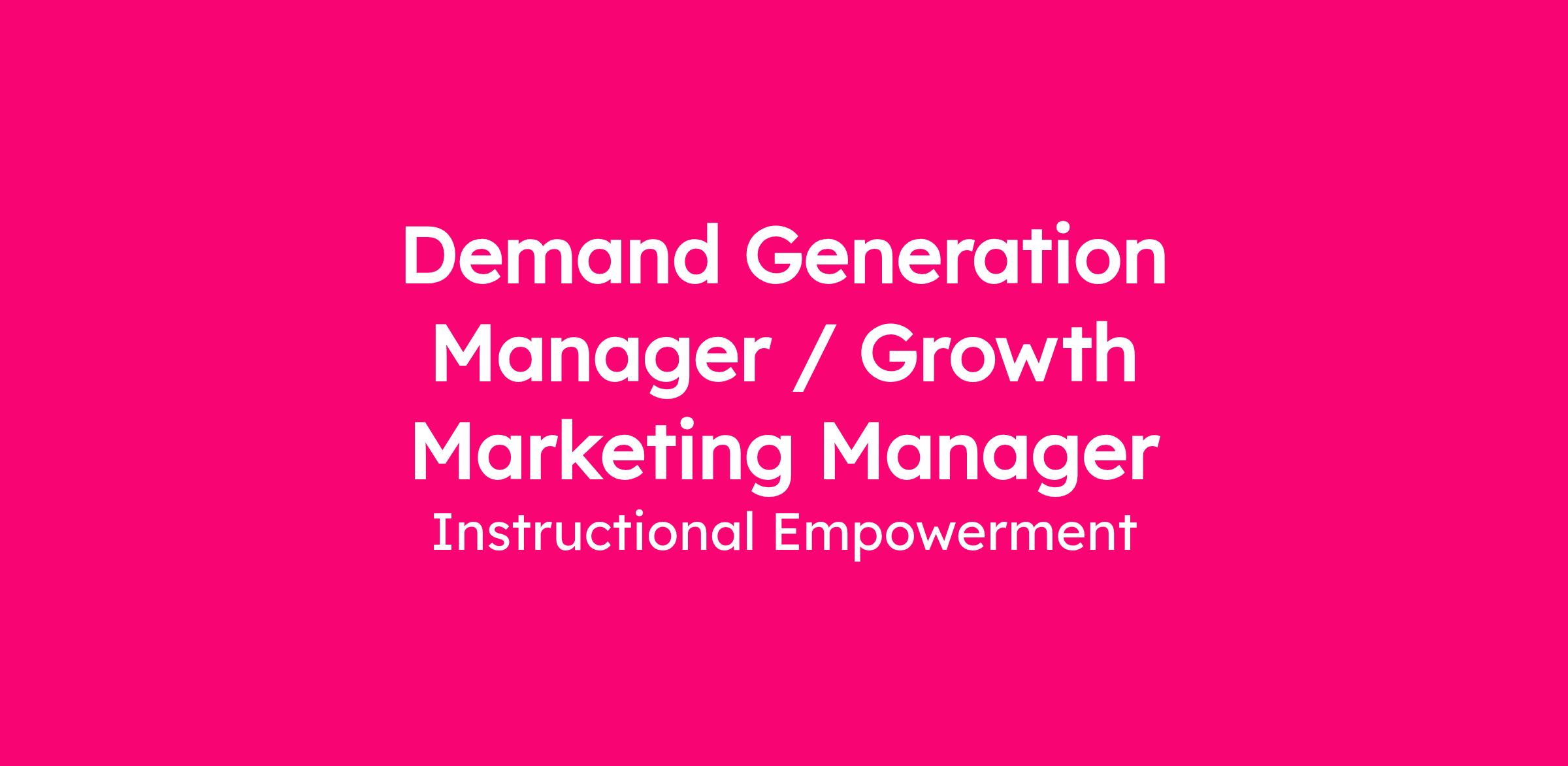 Demand Generation Manager / Growth Marketing Manager Full-time/remote Must reside in the Central or Eastern time zone