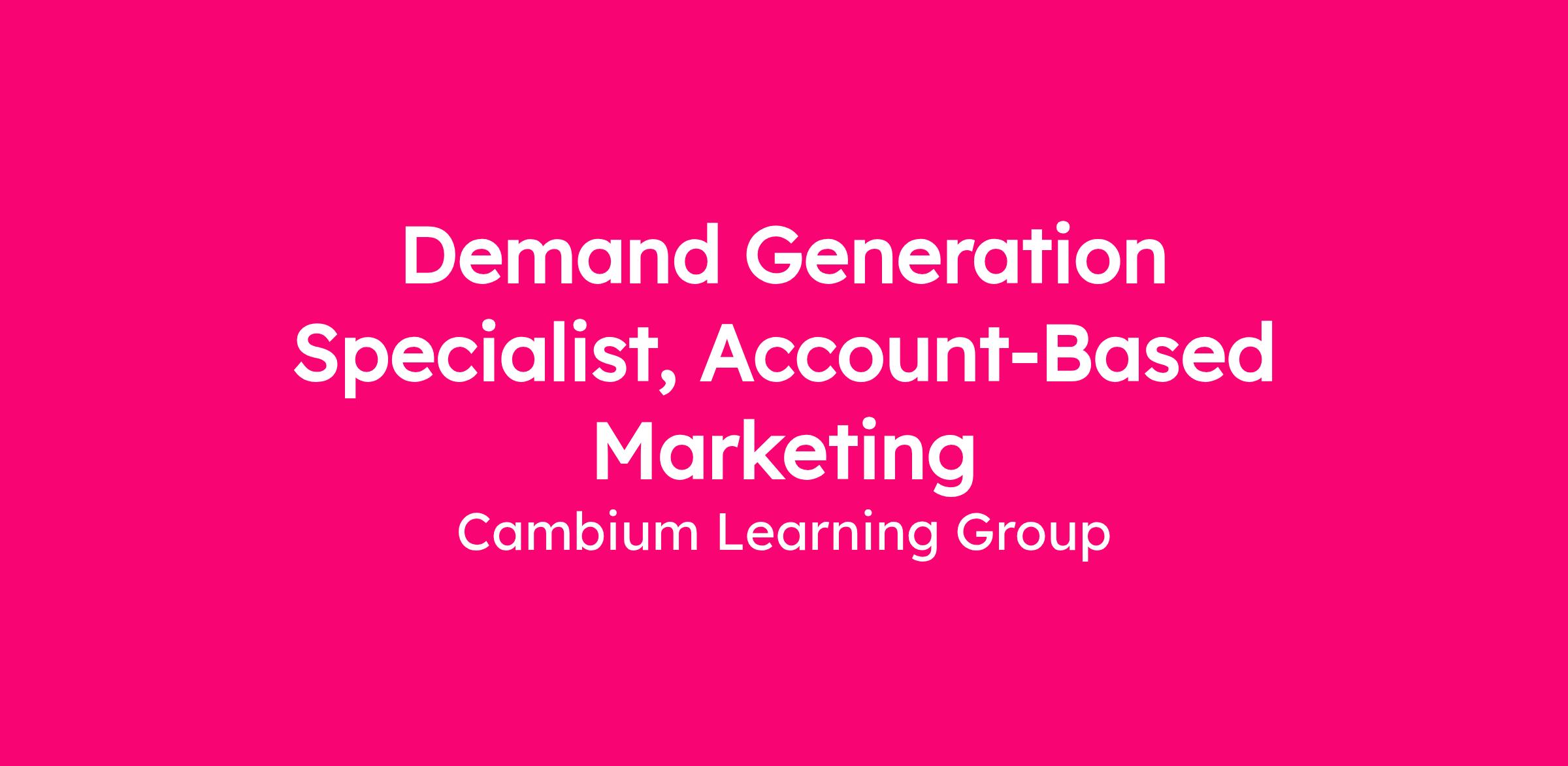 The Demand Generation Specialist, Account-Based Marketing (ABM) role is an engaged program management role perfect for a marketer who has some demand generation experience, but is ready to take their career to the next level. They will help to build and execute on our account-based experience (ABX) strategy, working closely with National and Regional program managers, sales, and customer success.