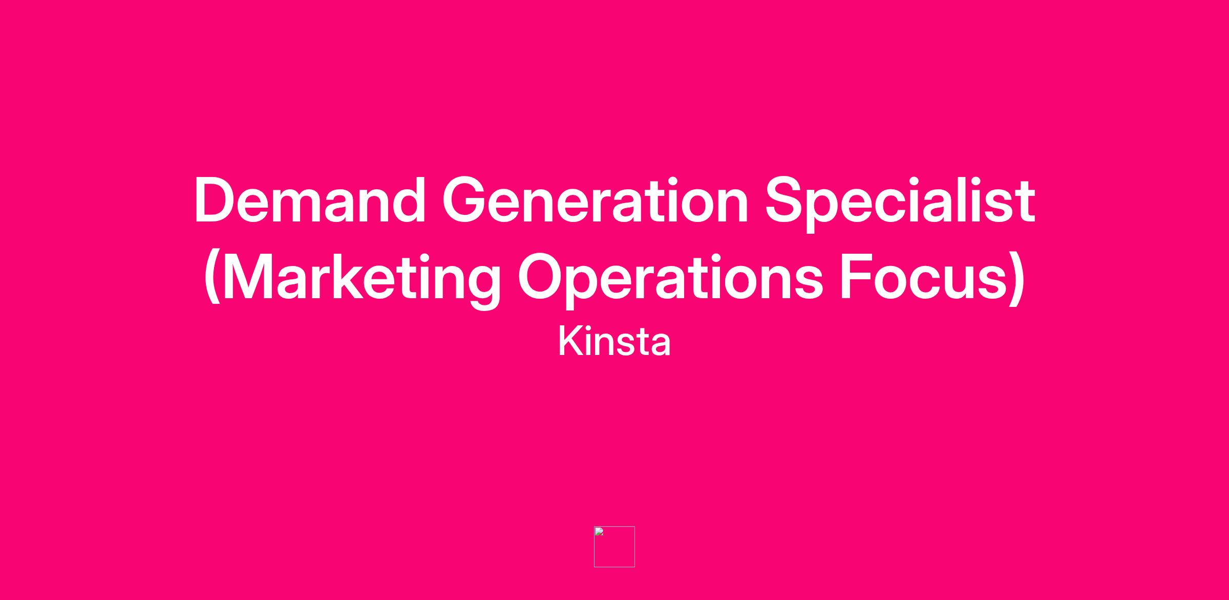 We’re looking for a Demand Generation Specialist with a marketing operations focus to turn data, automation, and process excellence into pipeline growth.In this role, you’ll make Kinsta’s demand generation programs more predictable, measurable, and scalable, helping bridge the gap between marketing activity and revenue impact. Working closely with the Events, RevOps, and Sales teams, you’ll support event campaigns, build email and intent programs, and turn marketing activity into meaningful sales conversations.