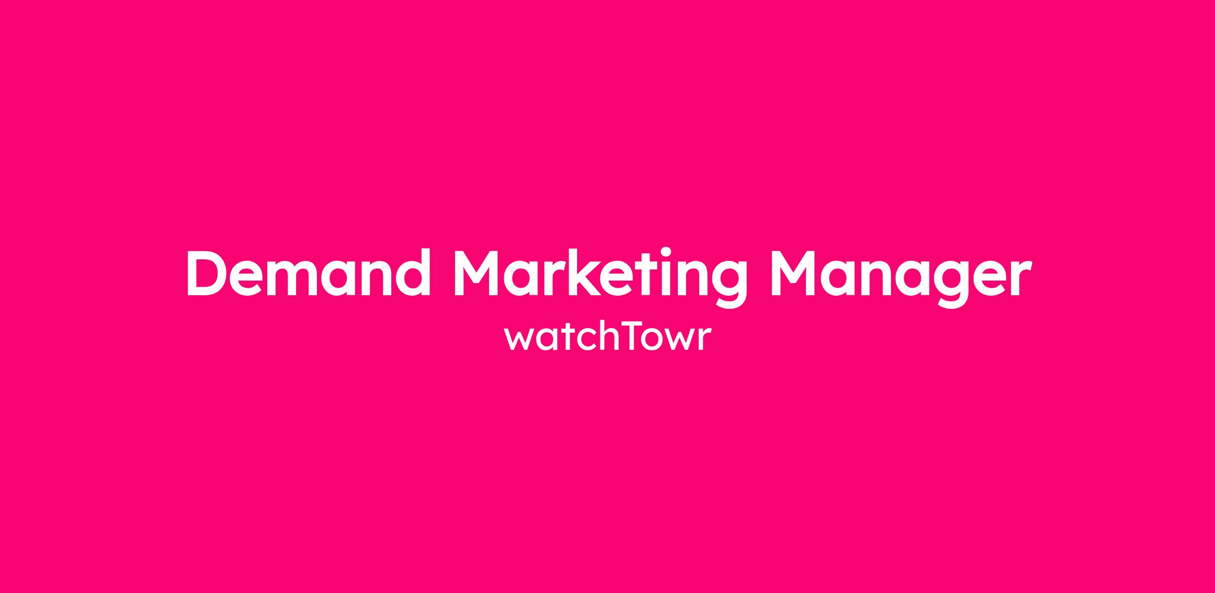 We’re looking for a Demand Marketing Manager to own and scale watchTowr’s inbound, nurture, and pipeline generation engine. This role sits at the centre of revenue growth and is accountable for demand quality, funnel progression and pipeline contribution across enterprise sales cycles. This role is based in the UK.