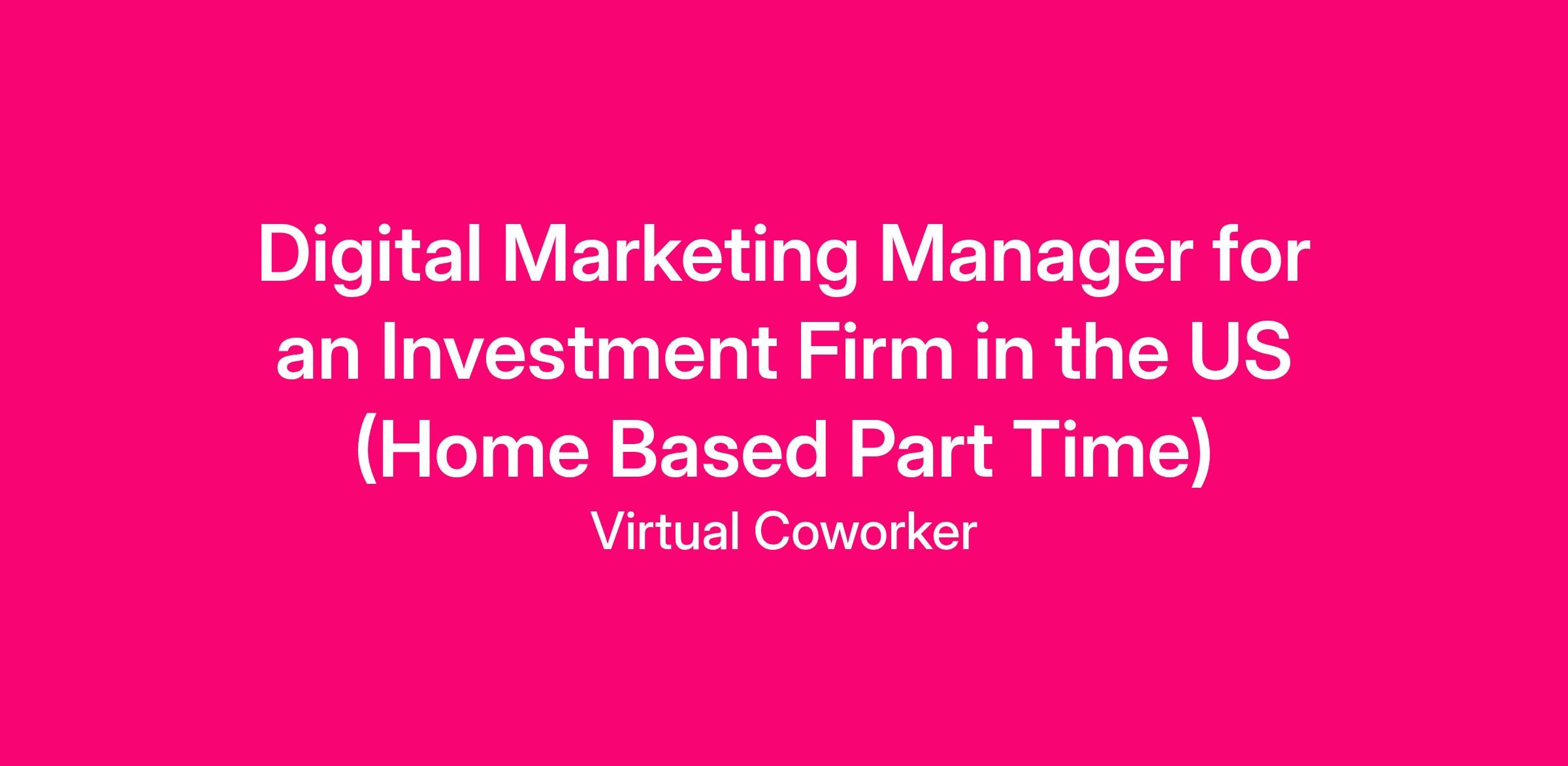 Digital Marketing Manager for an Investment Firm in the US (Home Based Part Time)