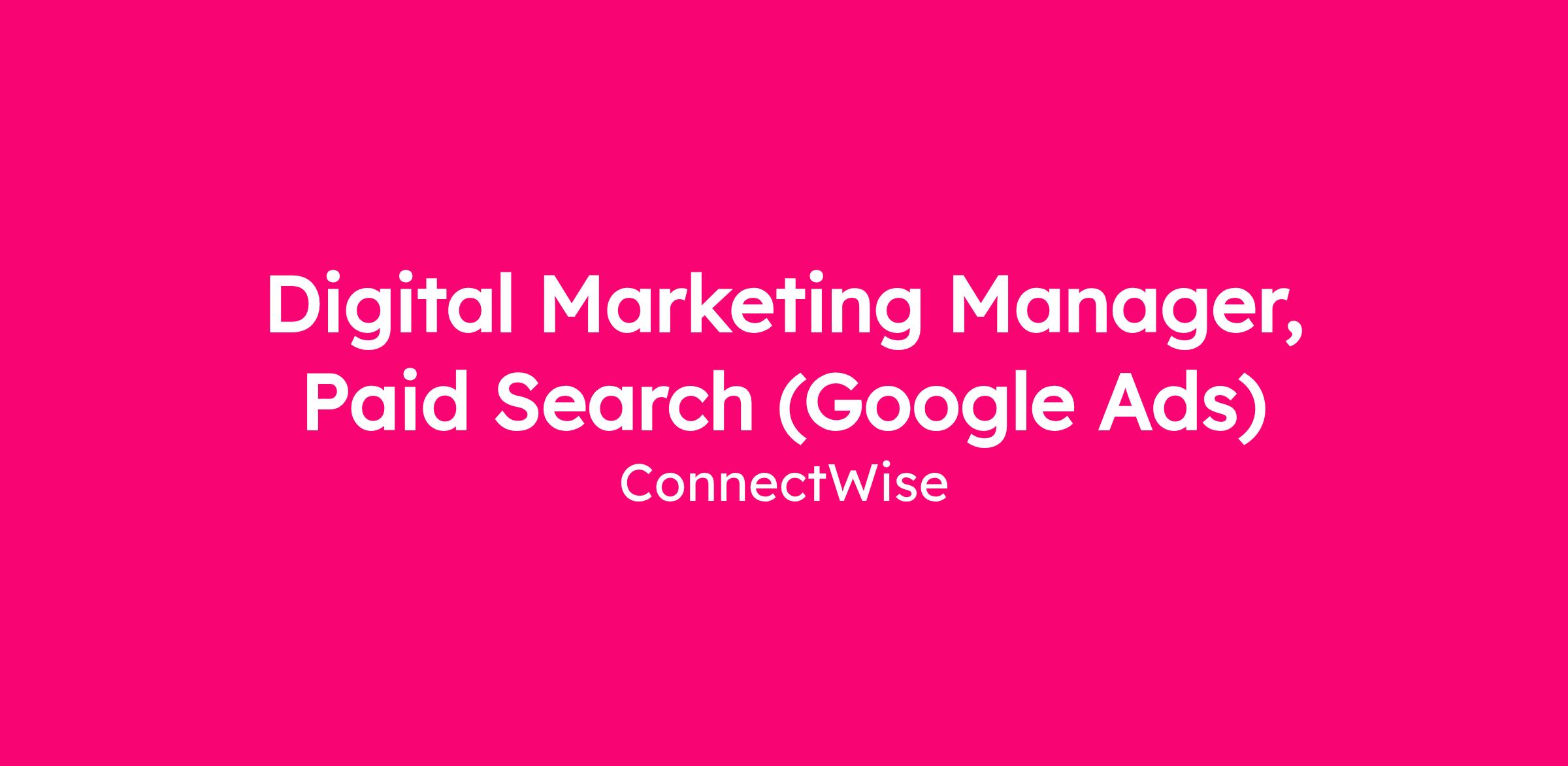 The Digital Marketing Manager, Paid Search plays a critical role in driving pipeline and revenue growth through the strategy, execution, and optimization of ConnectWise’s paid search programs. Reporting to the Team Lead of Digital Marketing, this role owns day-to-day management of paid advertising across Google, Microsoft (Bing), and YouTube, ensuring campaigns are optimized to drive qualified traffic, conversions, and measurable ROI. This position requires deep platform expertise, strong analytical capabilities, and a hands-on approach to in-platform execution. The ideal candidate thrives in a performance driven environment, proactively identifies optimization opportunities, and translates business objectives into scalable paid search strategies that support ConnectWise’s growth goals.