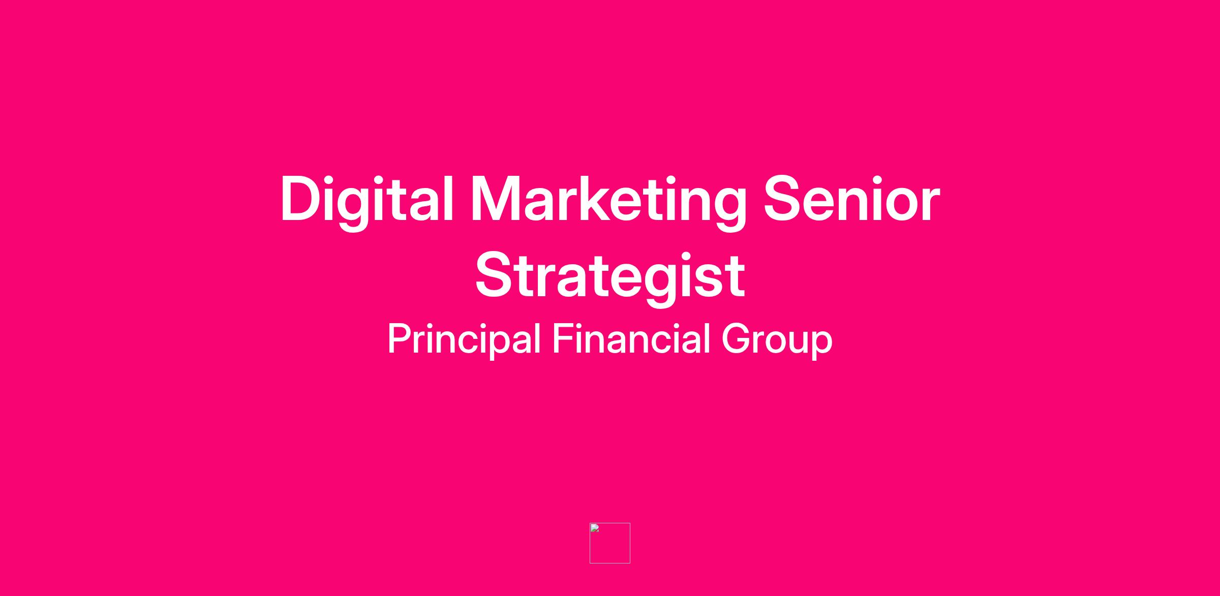 Are you a digital marketing leader who thrives at the intersection of strategy, technology, and customer experience? At Principal, we’re looking for a Digital Marketing Senior Strategist to own and evolve our flagship digital experience at **www.principalam.com**—helping turn complex customer needs into intuitive, high-impact digital journeys.