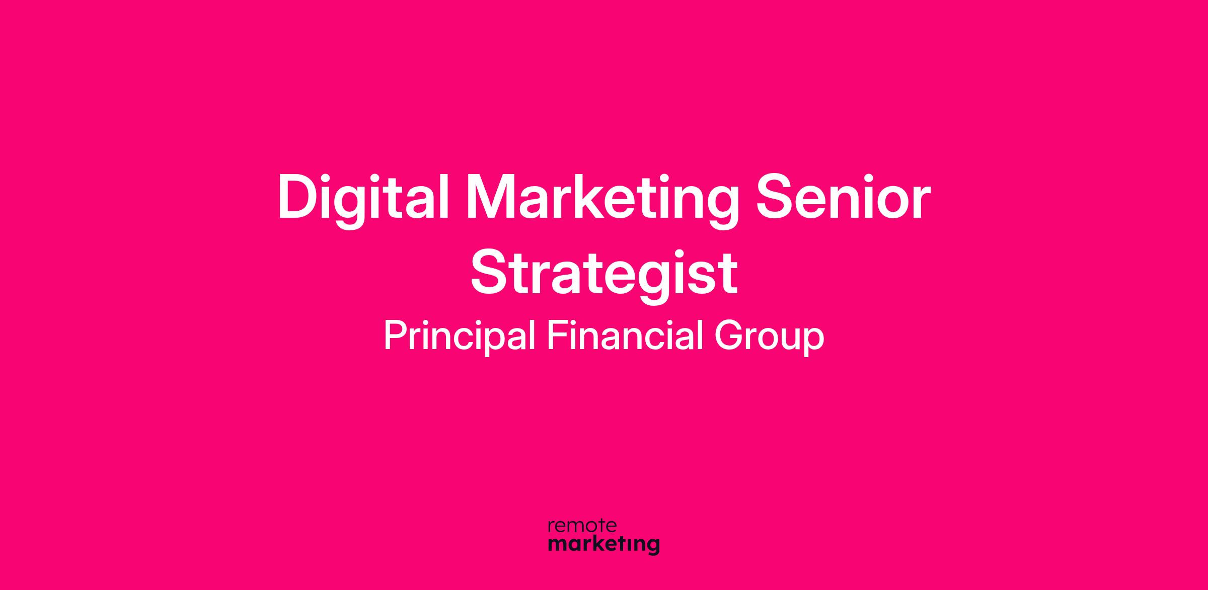 Are you a digital marketing leader who thrives at the intersection of strategy, technology, and customer experience? At Principal, we’re looking for a Digital Marketing Senior Strategist to own and evolve our flagship digital experience at **www.principalam.com**—helping turn complex customer needs into intuitive, high-impact digital journeys.