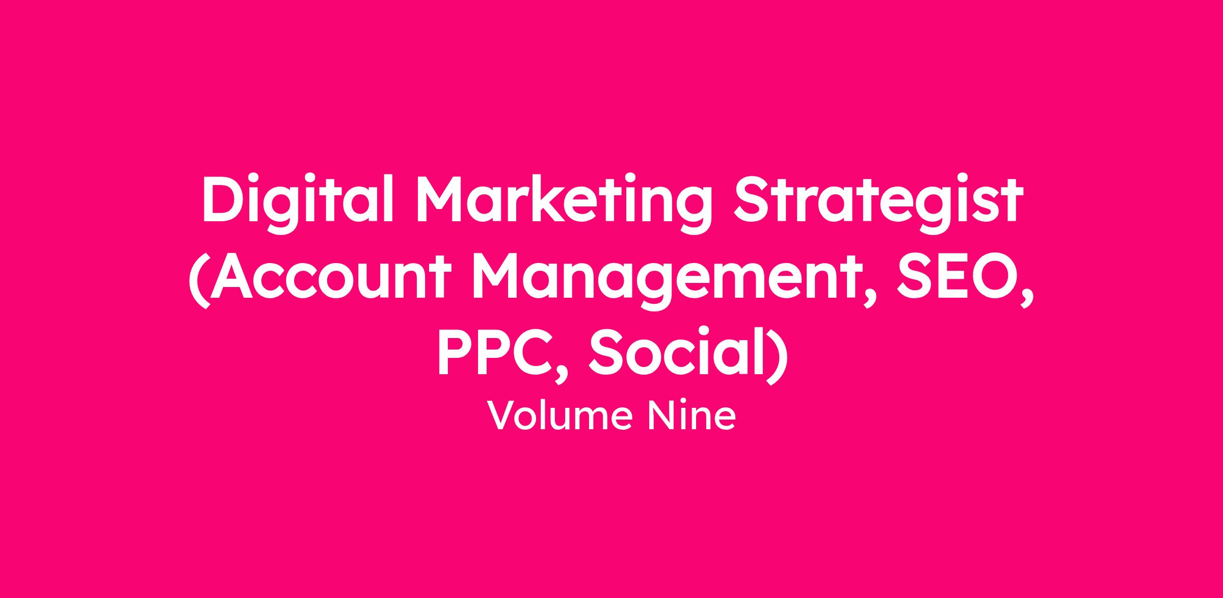List the tools you’ve used in your resume (GA4, SEMrush, Google Ads, Meta Ads, HubSpot, Looker Studio, etc.). Highlight client-facing work: strategy, reporting, stakeholder management, and account ownership. If you have agency experience, please make it obvious (name the agencies and your responsibilities).Please avoid the lure of letting AI do the work for you when applying, we want to meet and get to know you - not ChatGPTWe’re looking for serious applicants who are genuinely excited about this role and the opportunity to grow with Volume Nine. Our application includes a few thoughtful questions that take a bit of time, but we want you to know we read every response carefully and take the process seriously. If this position feels like a great fit for you, we encourage you to bring your A-game, be specific, and help us understand what makes you stand out. We’re excited to meet the right person.
