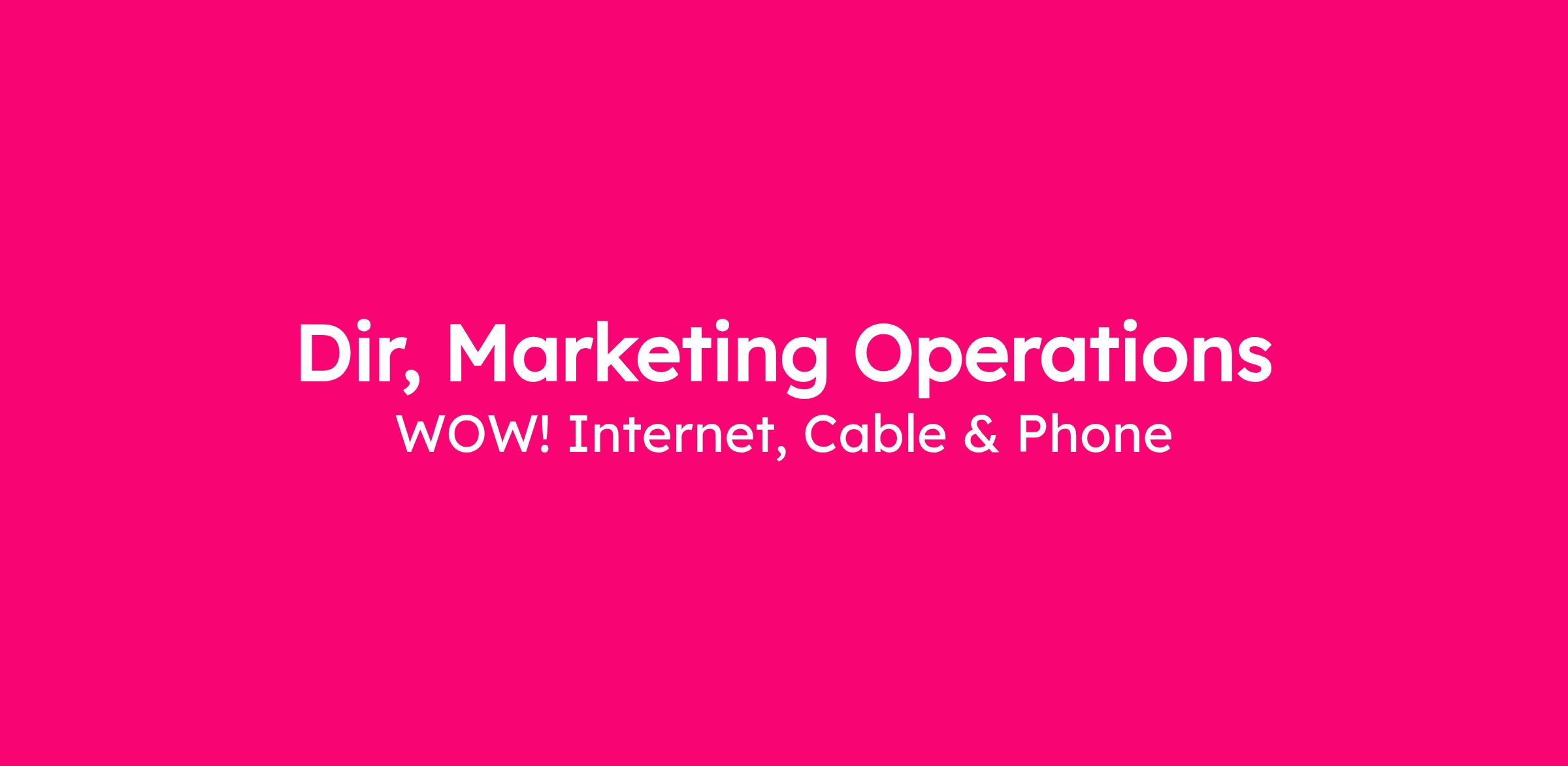 WOW! is seeking a strategic and operationally exceptional Director, Marketing Operations, to serve as the engine behind our marketing organization. This leader will own the annual and quarterly marketing planning process, ensuring cross-functional alignment and executive visibility into strategy, performance, and investment decisions. You will connect Brand, Growth, Field Marketing, Product, Finance, Sales, and Analytics into one unified operating cadence ā transforming strategy into execution with clarity, accountability, and measurable business impact.
