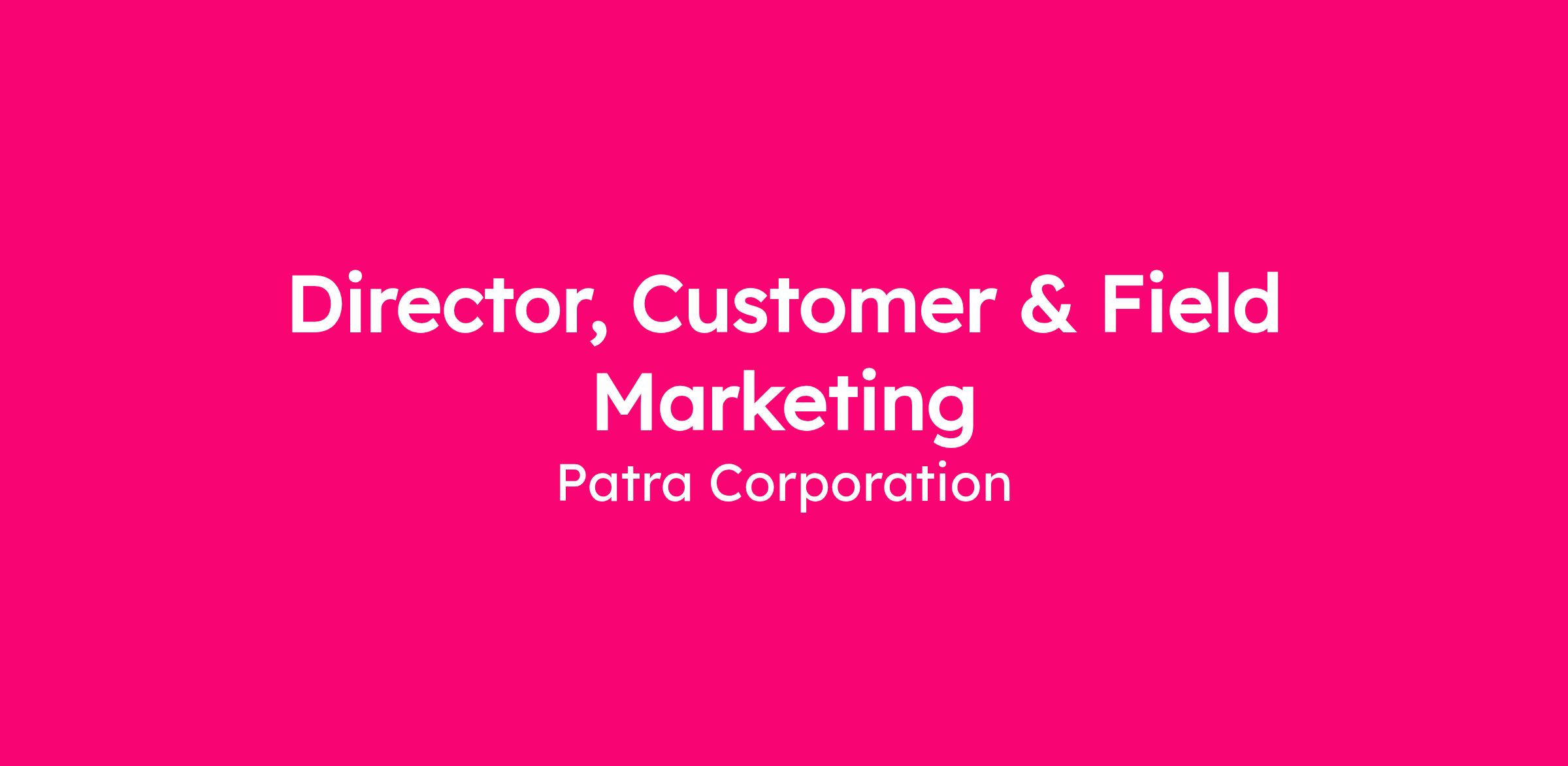The Director, Customer & Field Marketing will design, scale, and own marketing programs that deepen relationships with Patra’s existing customers, activate field and channel presence, and drive expansion revenue. This leader is accountable for customer engagement strategy, account‑based marketing, event and field program execution, and orchestrating external partners to execute at scale.