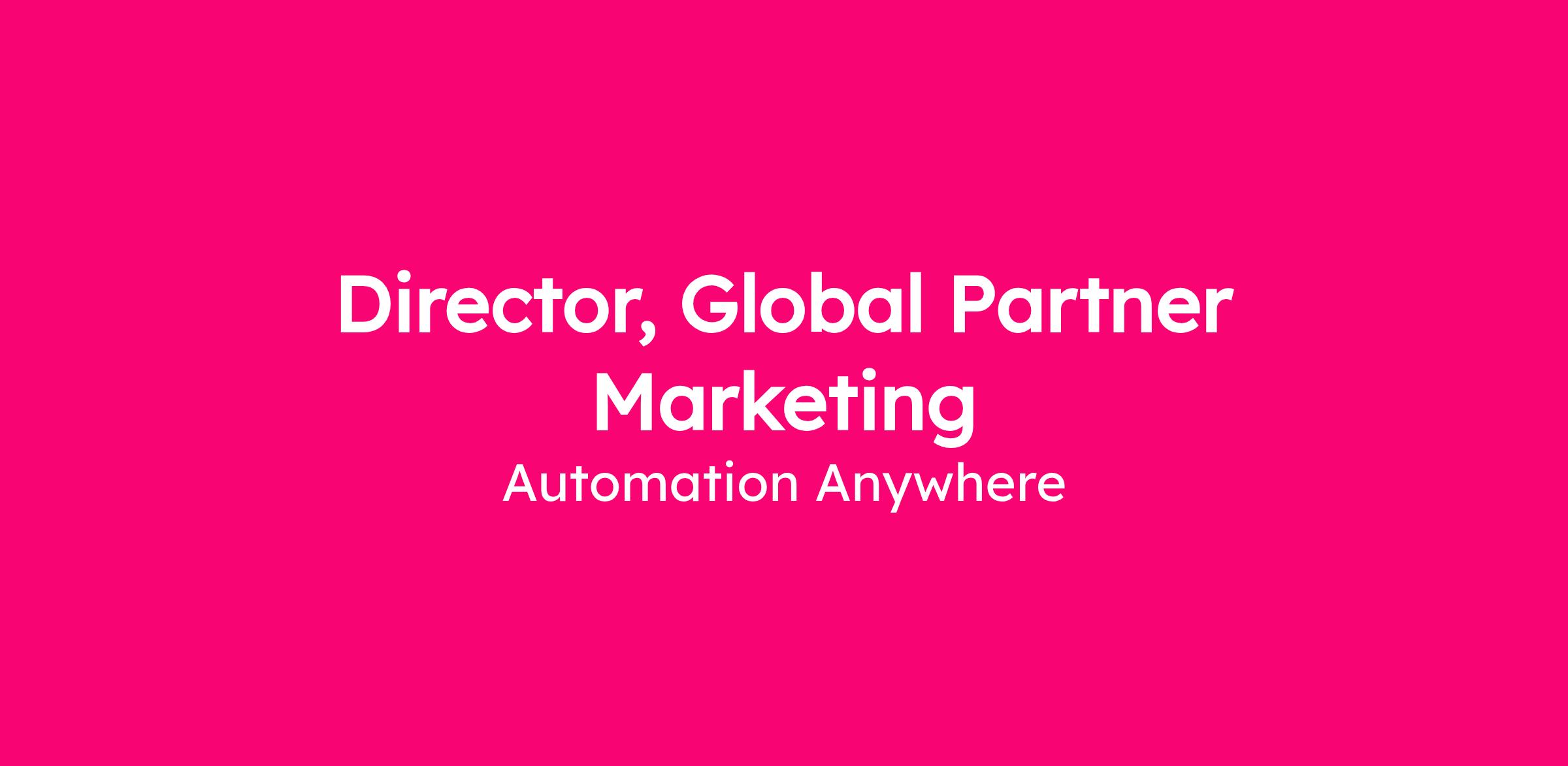 Automation Anywhere, the leader in Agentic Process Automation (APA), is seeking a strategic and experienced Director, Global Partner Marketing to shape and scale high-impact, partner-driven marketing initiatives across our global ecosystem. This role is instrumental in amplifying joint value with strategic partners, accelerating pipeline creation, and driving meaningful go-to-market outcomes at scale.