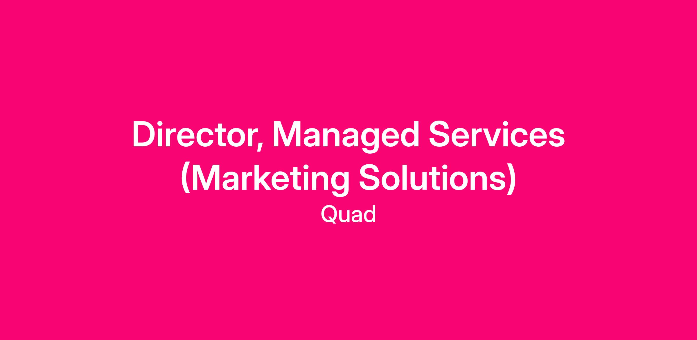 The Director, Managed Services (Marketing Solutions) will lead strategic client engagements that drive marketing effectiveness, operational efficiency, and revenue growth across Quad’s Marketing Solutions portfolio. This role requires a seasoned professional who combines consultative acumen, marketing expertise, and cross-functional leadership to deliver high-impact solutions for enterprise clients.