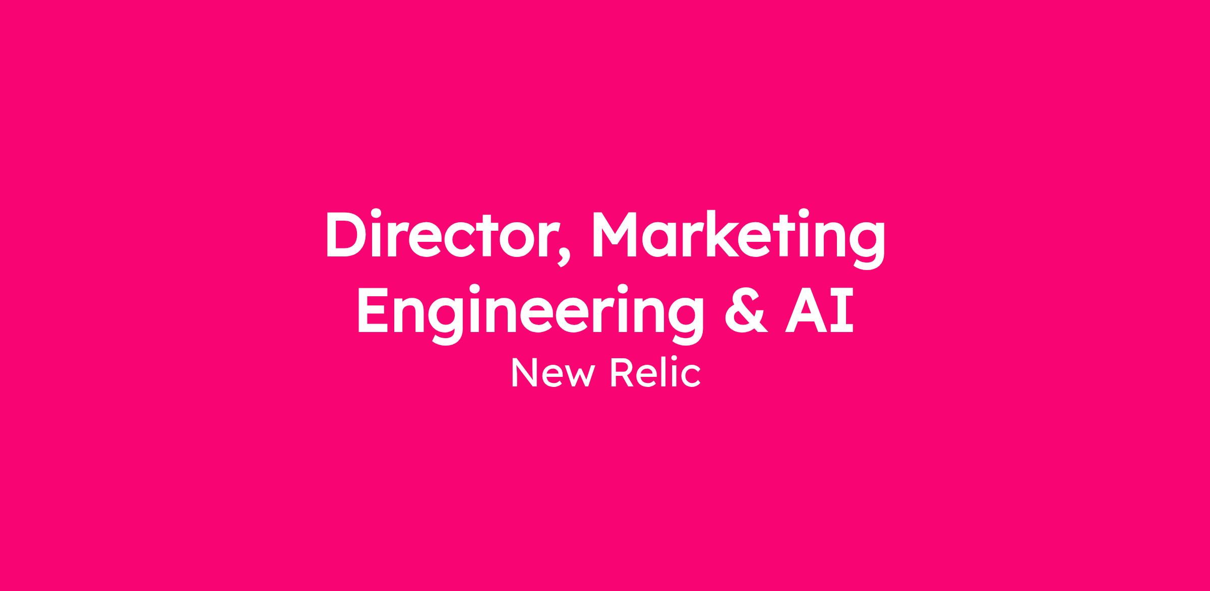 New Relic’s Growth Team is looking for a Director, Marketing Engineering & AI who will report to the VP, Growth Marketing Operations and Insights. This leader will be at the forefront of driving scale and efficiency across the entire marketing organization by spearheading the transition to AI-forward tooling and workflows.