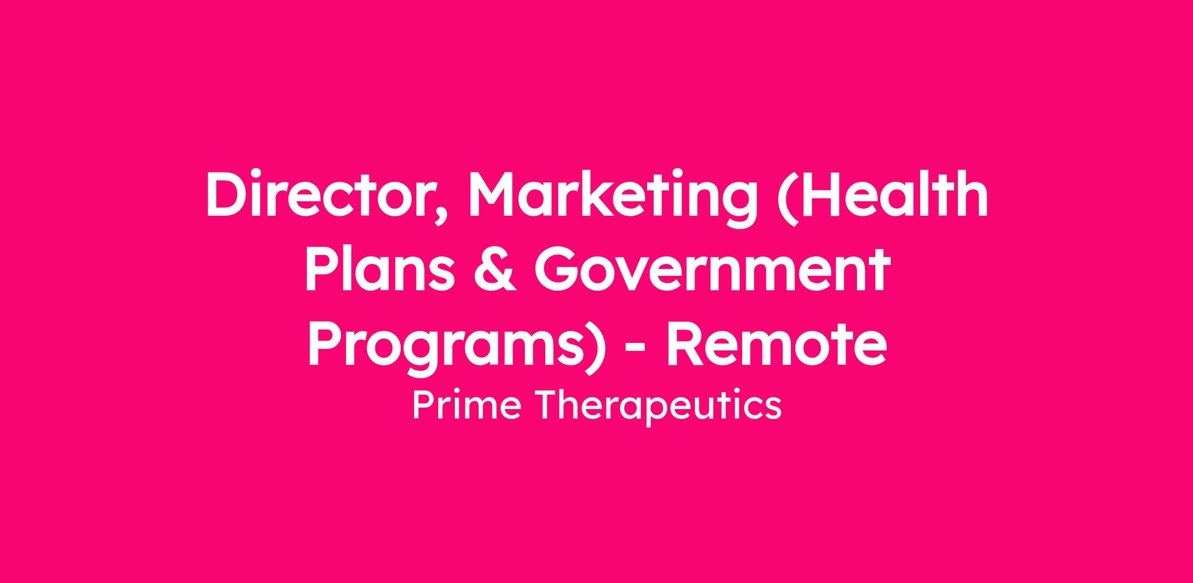 Director, Marketing (Health Plans & Government Programs) - Remote