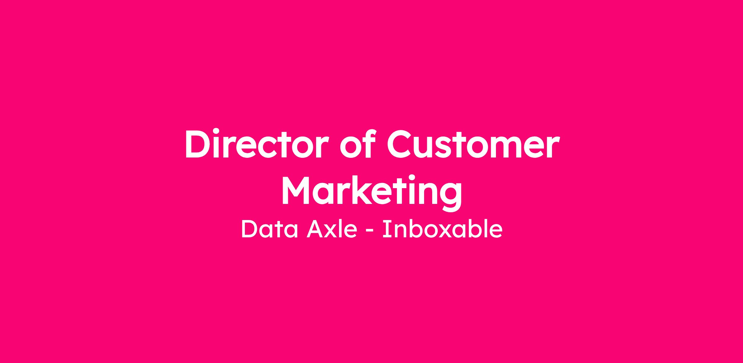 Data Axle is a leader in data solutions that drive meaningful connections between companies and people. We harness data, AI, and technology to create authentic, personalized experiences to improve our clients’ business performance. Recognized for delivering innovative B2B and B2C solutions and exceptional service for more than five decades, our global team is dedicated to helping businesses and nonprofits of all sizes thrive. We are currently seeking a Director of Customer Marketing.