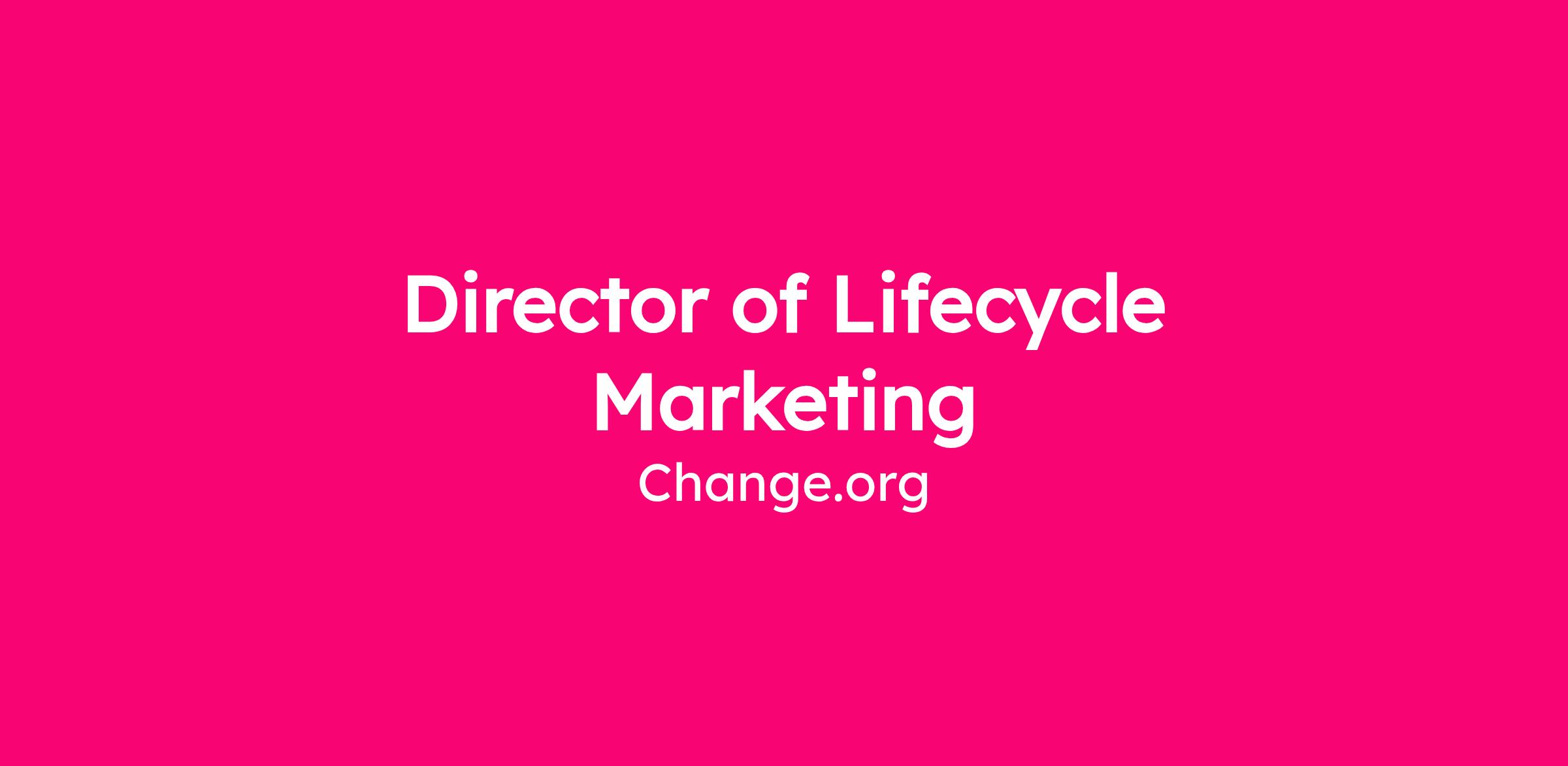 As Director of Lifecycle Marketing, you will set the vision, strategy, and executional excellence for Change.org’s global lifecycle program.