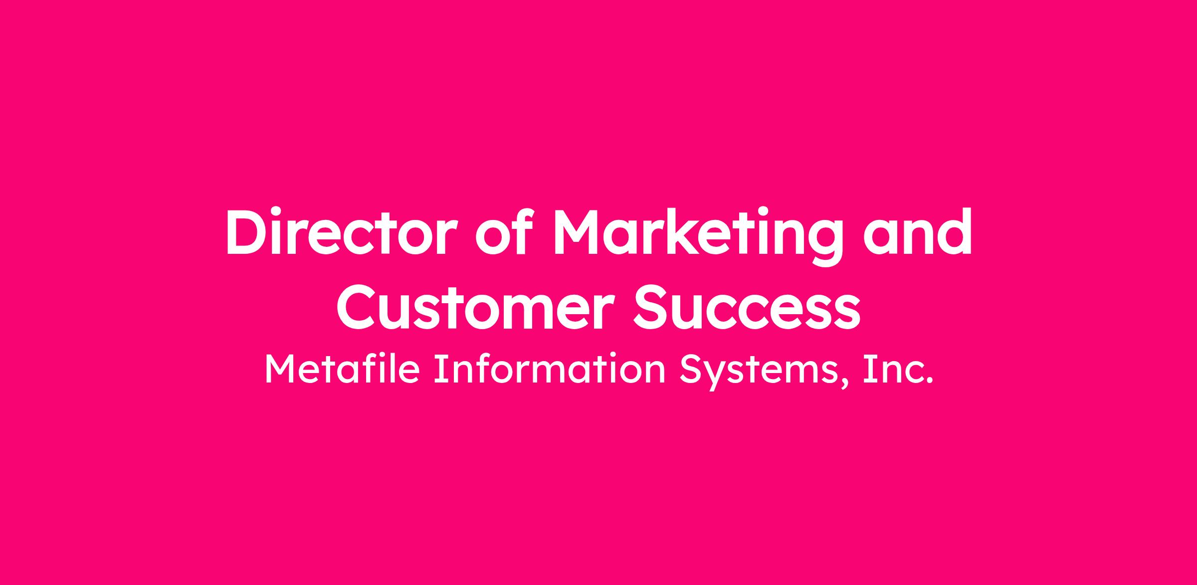 The Director of Marketing and Customer Success leads two tightly connected functions that drive revenue growth and customer outcomes. This role owns marketing-led demand generation and revenue-generating customer success execution within Metafile’s existing customer base.