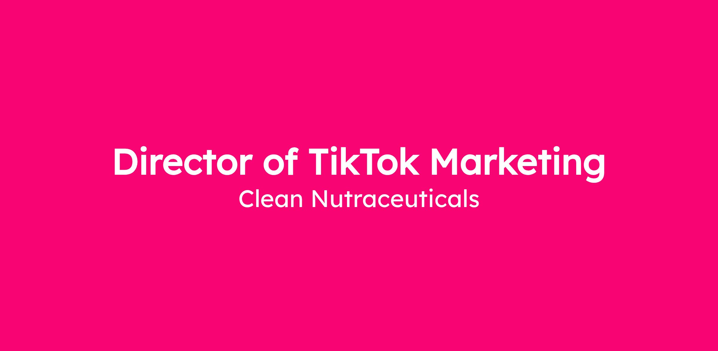 Clean Nutraceuticals (aka Clean Nutra) is a fast-growing DTC supplements brand revolutionizing the nutraceuticals space with clean, high-quality products. We're seeking a Director of TikTok Marketing to lead our TikTok-first growth strategy. This role focuses exclusively on leveraging TikTok's ecosystem (Ads, Shop, organic content, influencers) to drive explosive customer acquisition, retention, and revenue in a competitive supplements market. If you're a TikTok native with proven DR expertise scaling health/wellness brands to $10M+ via viral funnels, this is your chance to own our TikTok channel.