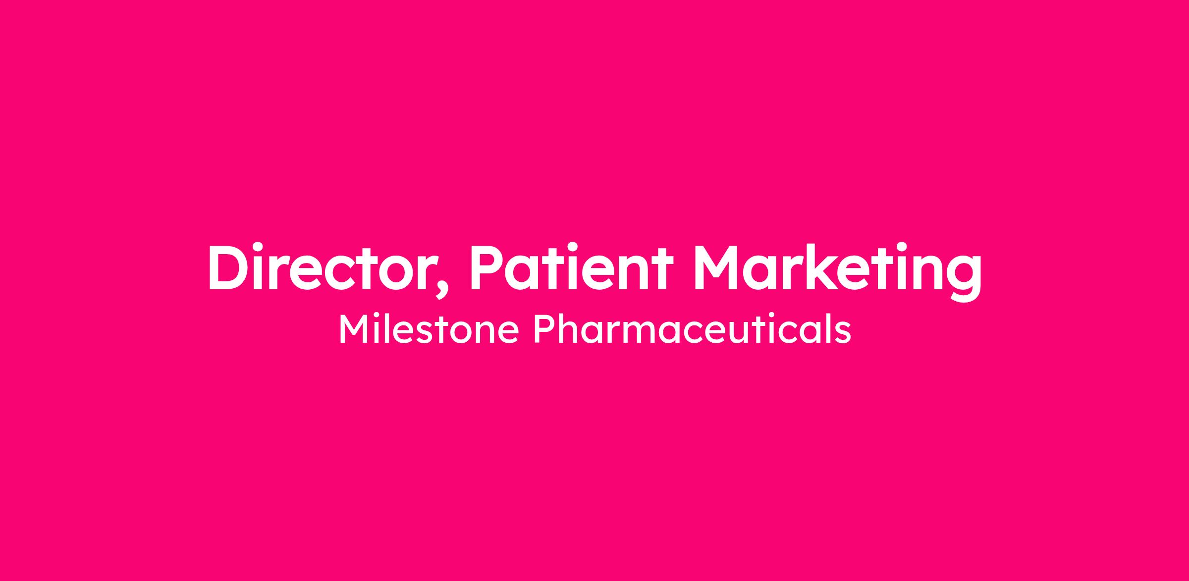 WHY JOIN MILESTONE?At Milestone, we are aspiring to introduce a paradigm shift for cardiac therapy. We are focused on developing treatments for self-administration outside of the emergency department or hospital setting for patients with acute episodes of paroxysmal supraventricular tachycardia (PSVT) and atrial fibrillation (AFib), as well as other episodic cardiovascular conditionsBeyond our science, we are a team guided and driven by our core values. Patient needs are continually upheld as our guiding light. Our teamwork is strengthened in an environment in which we support, challenge and care for each other while having fun and celebrating our achievements together. We maintain an entrepreneurial mindset that places high value on grit (courage and resolve). Decision making is based on evaluating information and the merits of the idea. We act individually and as a team with humility, empathy, and unwavering integrity.We want the best talent combined with high passion to continue on our journey to find cures and motivate change. Just imagine the possibilities of this team, and what we can do together.HOW WILL YOU ACHIEVE AT MILESTONE?Reporting to the Vice President of Marketing, the Director of Patient Marketing will be responsible for building and executing patient marketing strategies for CARDAMYST in the US market. The successful candidate will be a foundational member of the marketing leadership team and responsible for marketing to all external customers as well as leading patient CRM & Social Media agencies, commercial partner/vendor relationships, and leading cross functional collaboration. In addition, the Director of Patient Marketing will help to build and work closely with all key commercialization functions, including Corporate Communications/PR, Medical Affairs, Market Access, Commercial Operations, Regulatory Affairs, Finance, and Human Resources to ensure organizational alignment with the patient marketing strategy. Although primarily focused on activating persons with or suspected PSVT, the Director of Patient Marketing will also contribute to plans for future pipeline assets as well as life cycle activities for CARDAMYST. The successful candidate will ideally be willing to relocate to Charlotte but could also work remotely if they can commit to frequently commuting to attend key organizational and planning meetings with their peers.Location40% of work travel required
