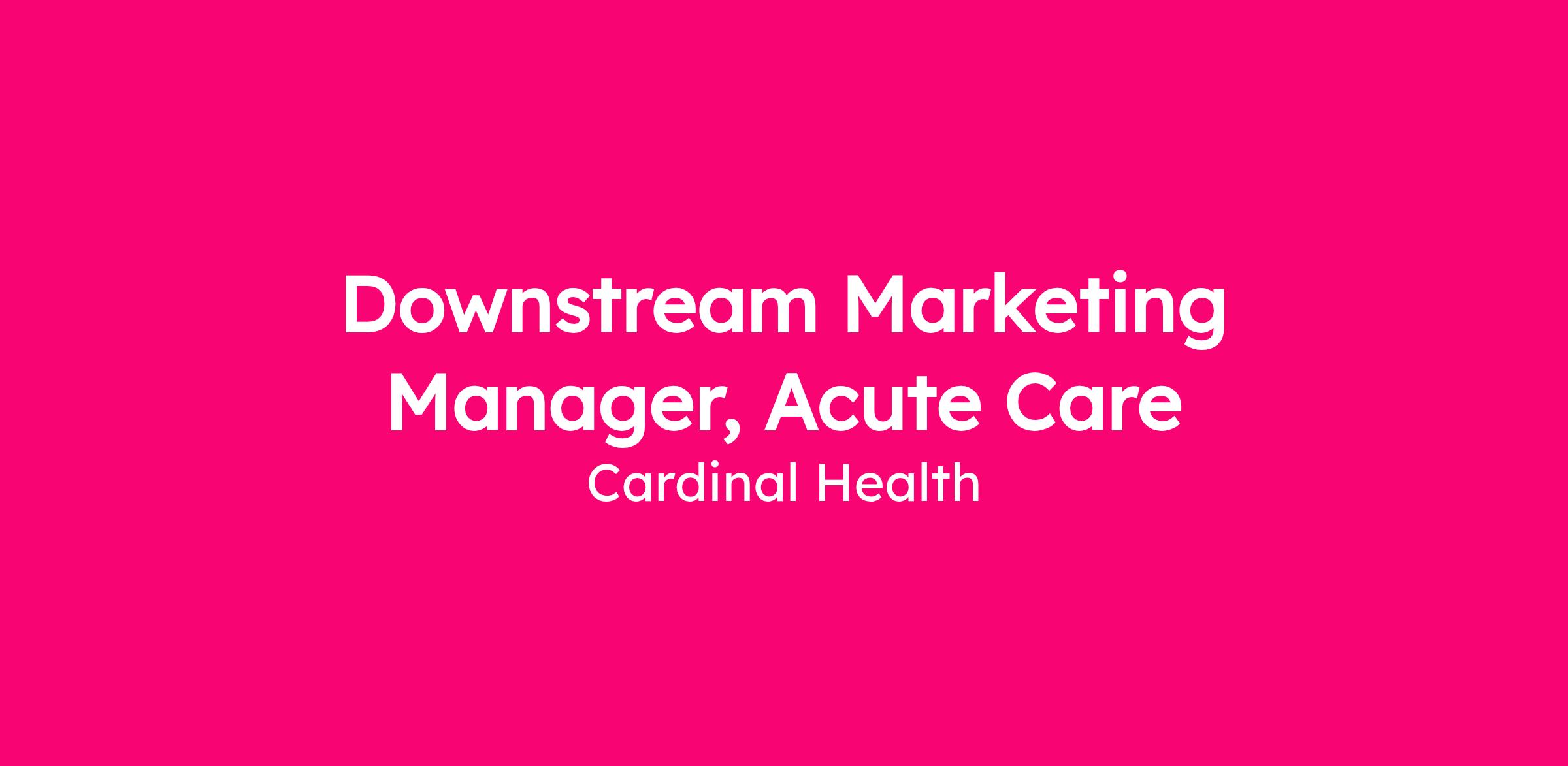 The Downstream Marketing Manager, Acute Care supports the commercial strategy and execution for the Presource Solutions portfolio within the U.S. Acute segment. This role partners closely with Sales, Business Development, Finance, and Clinical teams to drive new business, strengthen customer retention, and ensure consistent market execution aligned to Cardinal Health standards.