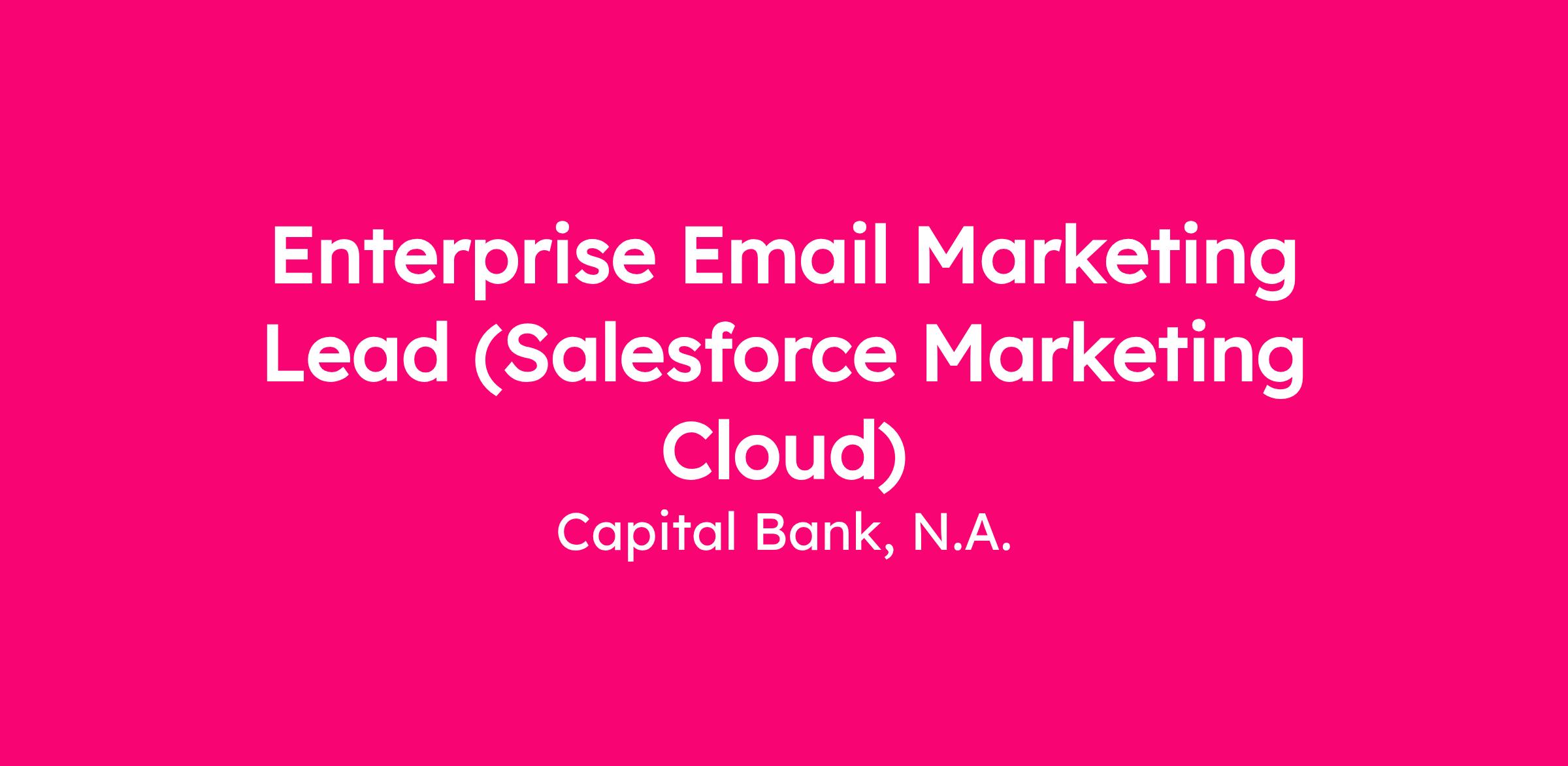 The Email Marketing Lead owns the email channel across Capital Bank’s enterprise marketing organization. This role is responsible for planning, building, deploying, and optimizing email campaigns that support marketing initiatives across multiple lines of business.
